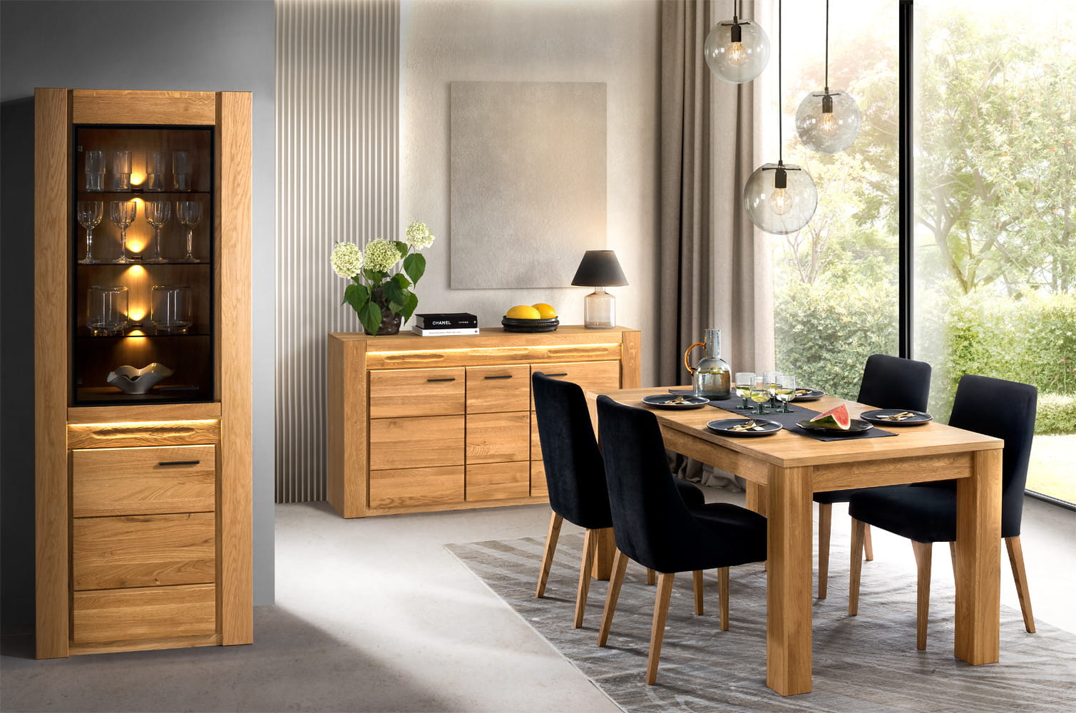 Komoda z czterema szufladami z kolekcji Velvet stanie się nie tylko użytecznym meblem, ale też niebanalną ozdobą pomieszczenia. Piękno litego drewna zostało zaklęte w nowoczesną, interesującą formę. Przestronne szuflady zmieszczą potrzebne przedmioty i akcesoria, dzięki czemu bez trudu uda się uporządkować wnętrze. Precyzyjne wykonanie i wysoka jakość materiałów sprawia, że mebel z linii Velvet to propozycja dla najbardziej wymagających użytkowników. Element ozdobny ze szropowanego drewna dodaje komodzie wyrafinowanego szyku, dzięki czemu za sprawą tego dodatku Twoje wnętrze nabierze prestiżowego charakteru.