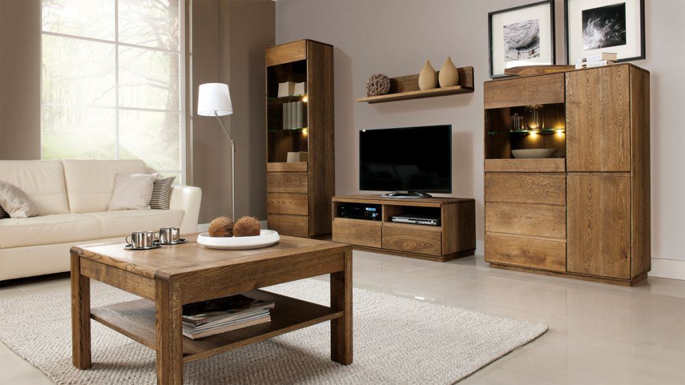 Meble wykonane są z litego drewna dębowego z elementami z płyty w naturalnej okleinie dębowej. Ich powierzchnie wykończono olejem i woskiem. Zaokrąglenia i podfrezowane krawędzie to wyróżnik kolekcji ATLANTA. Elementy drewniane są dodatkowo szczotkowane w celu „wydobycia” i uwypuklenia usłojenia.