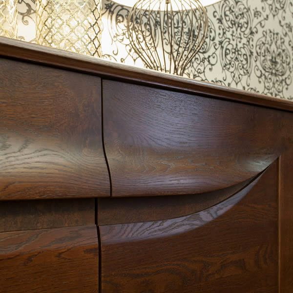 Bari to niezwykle bogata kolekcja mebli do jadalni, salonu sypialni i gabinetu o frontach z litego drewna dębowego barwionego na kolor dąb burgundzki lub dąb bielony classic i korpusach wykończonych okleiną dębową. Szeroki wybór wspaniale prezentujących się szafek, komód czy stołów, w tym stołu na nodze kolumnowej i ławostołu, pozwoli na stworzenie nowoczesnych i komfortowych wnętrz jadalni i salonu. Zestaw do sypialni obejmuje wszystko, co niezbędne do powstania wygodnego i eleganckiego miejsca do wypoczynku – między innymi dostępne w trzech wymiarach łóżko, kilka modeli szaf oraz urocza toaletka z lustrem.