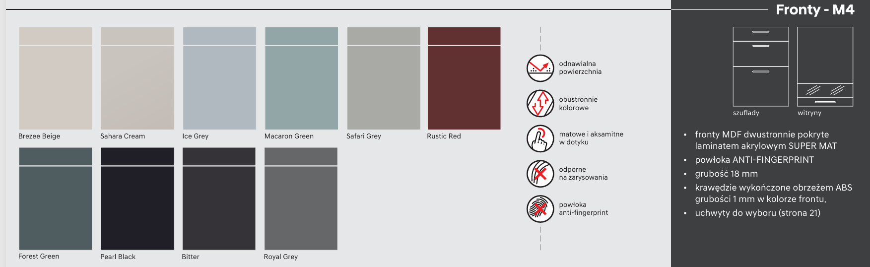 Blenda zabudowy narożnej Kammono. Wykonana z płyty laminowanej, co gwarantuje jej trwałość i odporność na uszkodzenia. Bogata oferta szafek sprawia, że każdy umebluje swoją kuchnie w swój sposób.