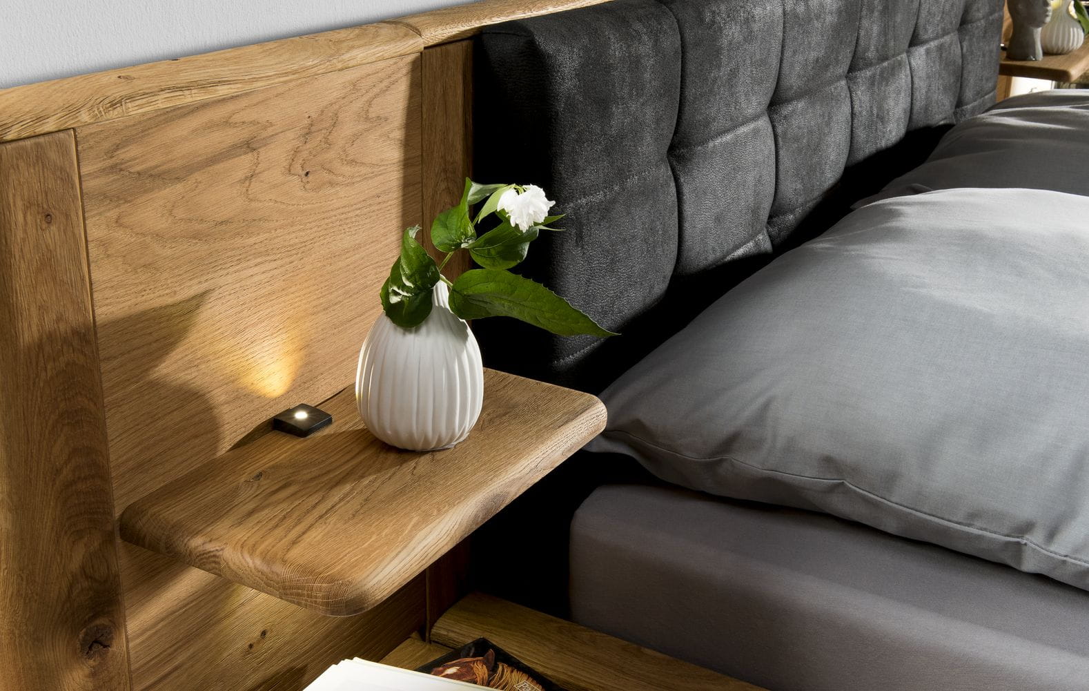 DENVER - kolekcja mebli wykonana z litego dębu uszlachetnionego olejem, który daje autentyczne właściwości materiałowe drewna. Ciepły naturalny kolor drewna emanuje przyjazną atmosferą, a sęki i szczotkowana powierzchnia nadają mocne akcenty. Zachwyca nowoczesnym, intensywnym materiałowo wzornictwem z zastosowaniem litego drewna dębowego i naturalnych materiałów. Miękkie szczotkowane powierzchnie podkreślają wyrazistość litego drewna i nadają przytulności oraz wartości. Przestrzeń sypialniana urządzona meblami z kolekcji Denver jest przysłowiowym strzałem w "10".