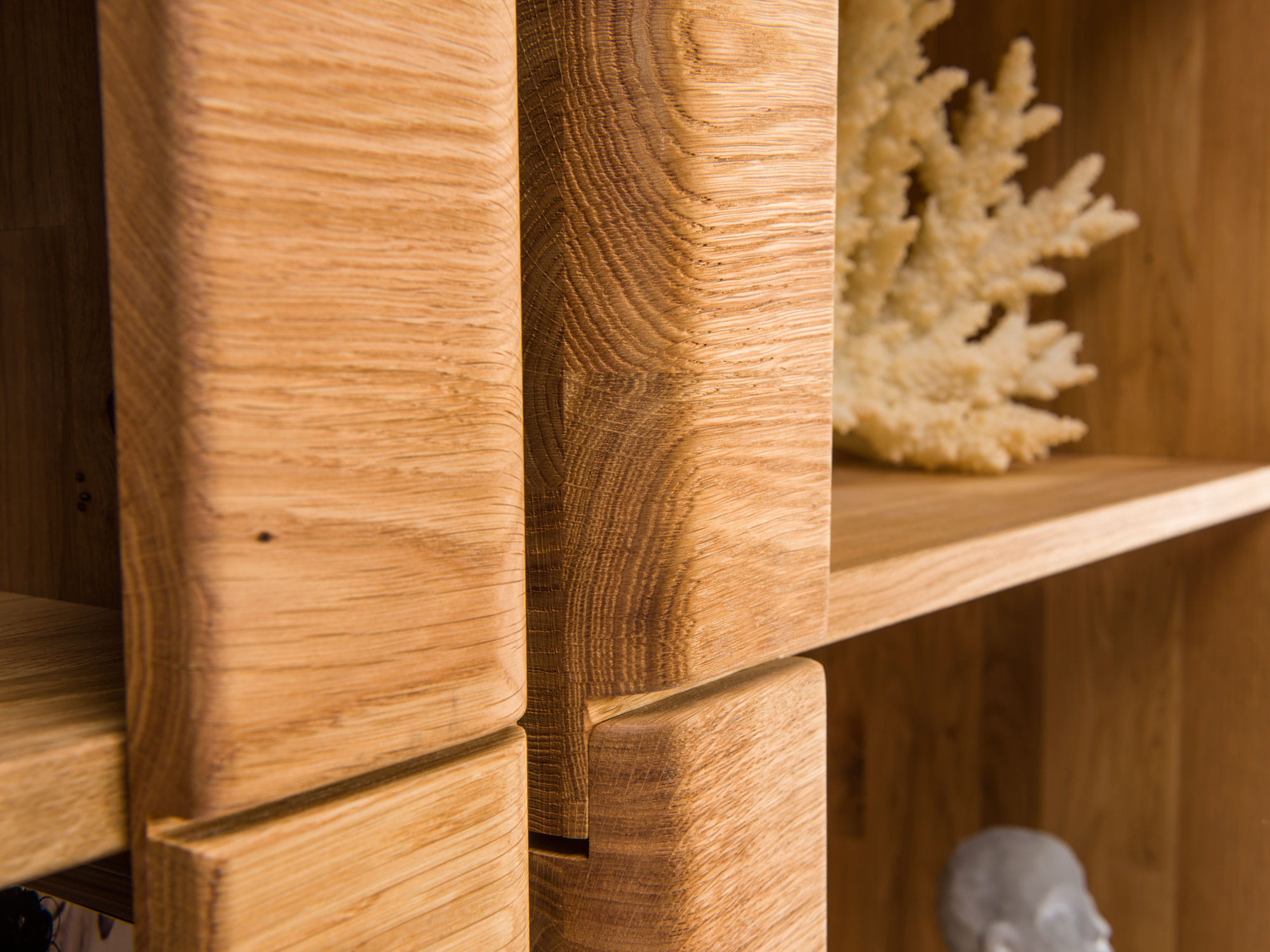 - Fronty i korpusy ma zrobione z pełnego drewna, dzięki czemu są solidne i trwałe.