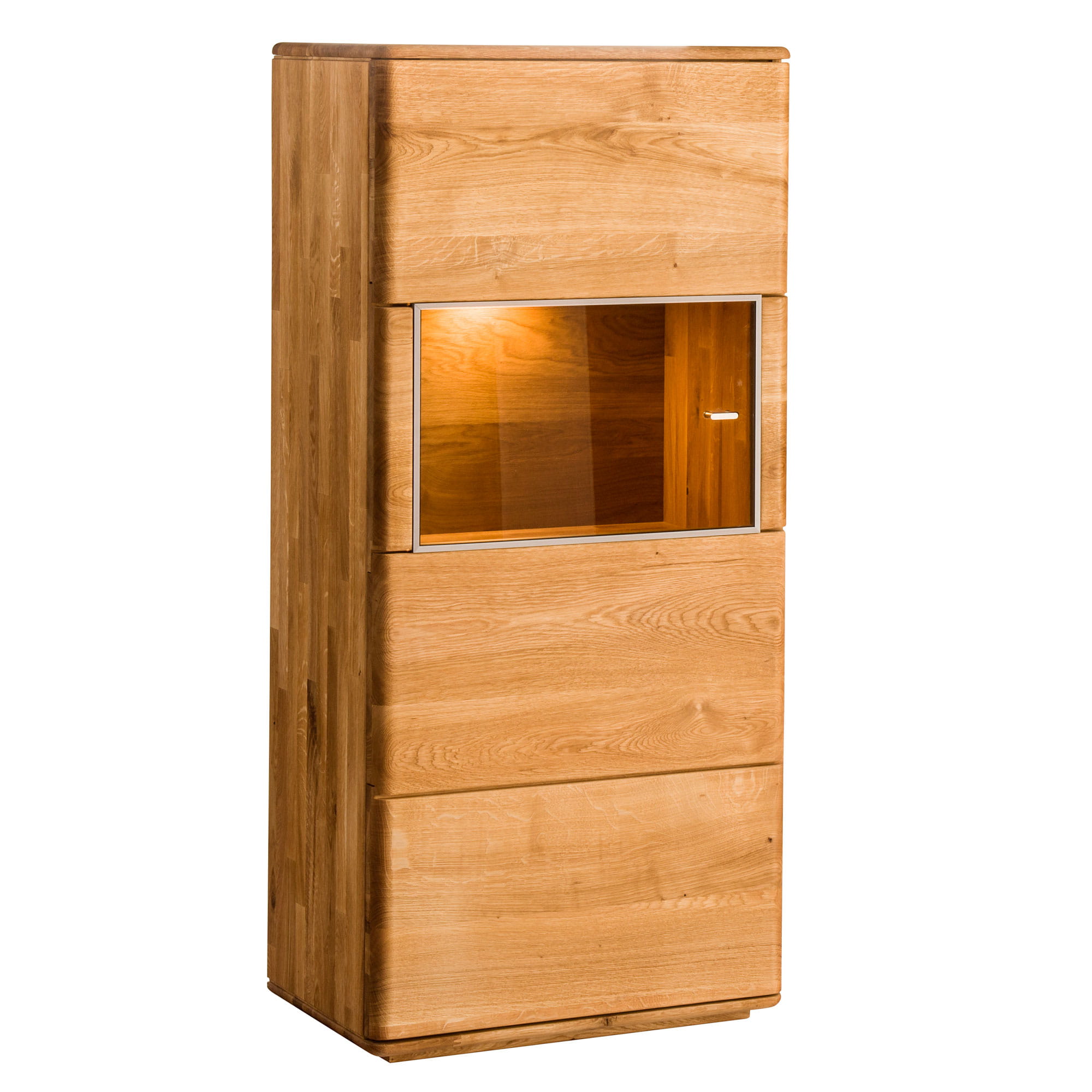 Każdy mebel z kolekcji DENVER/DALLAS to wyjątkowa bryła wyróżniająca się pięknem naturalnego drewna i doskonałą jakością wykonania. Witryna mała LEWA TYP 51 została wykonana z dębu sęcznego, dziki czemu zachwyca unikalnym usłojeniem i kolorystyką.