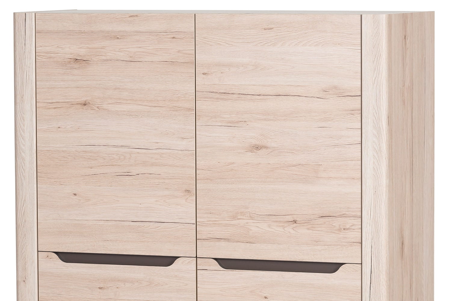 Komoda 2-drzwiowa propozycja dla poszukujących praktycznych rozwiązań i estetyki wykonania. Cała kolekcja utrzymana jest w dekorze o strukturze idealnie imitującej usłojenie drewna i przyjaznej kolorystyce dębu san remo. Wnętrze komody wypełniają funkcjonalne półki na których spokojnie rozmieścimy rzeczy.