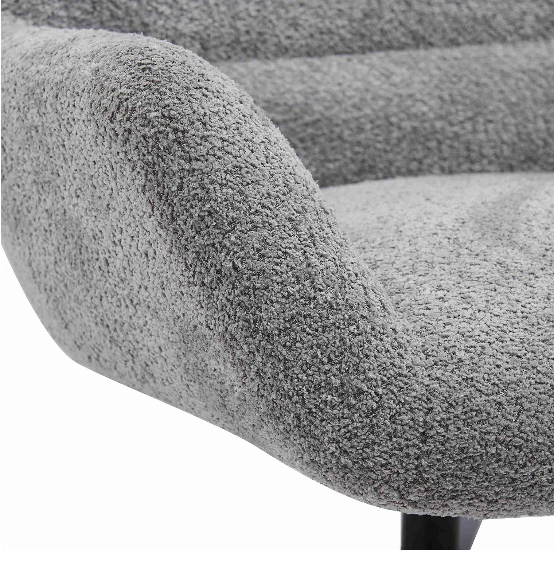 Wypoczynkowy, obrotowy fotel Bescia to połączenie miękkiego, szerokiego siedziska oraz metalowej obrotowej podstawy. Bardzo wygodny fotel komfort użytkowania zawdzięcza siedzisku wykonanemu z płyty wiórowej obitej miękką i gęstą pianką tapicerską, wykończonemu szarą, miękką tkaniną boucle. Fotel o szerokim wygodnym siedzisku wyposazony został w wygodne podłokietniki. Fotel obraca się, ale dzięki funkcji autoreturn zawsze wraca do pozycji wyjścowej. Podstawa fotela to minimalistyczna metalowa podstawa z 4 stopkami.