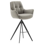 Hoker Assento C charakteryzuje się profilowanym siedziskiem z oparciem typu C. łączy się z zaawansowaną technologią komfortu – wypełnienie z sprężyn kieszeniowych zapewnia wyjątkową wygodę. To propozycja dla wymagających, którzy poszukują najwyższej jakości i wyrafinowanego wzornictwa.. Całość spoczywa na solidnym metalowym stelażu z czterema owalnymi nogami, wykończonym czarnym, matowym lakierem. Mechanizm obrotowy 360° z samoczynnym powrotem siedziska do pierwotnej pozycji dodaje użytkowaniu nowoczesnego pazura.