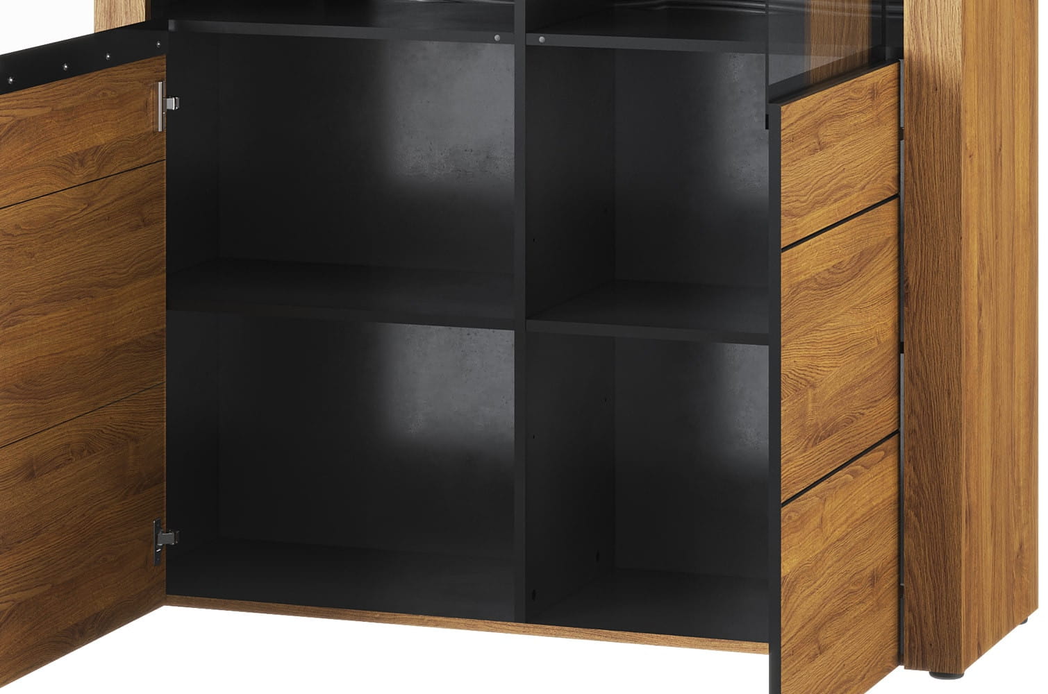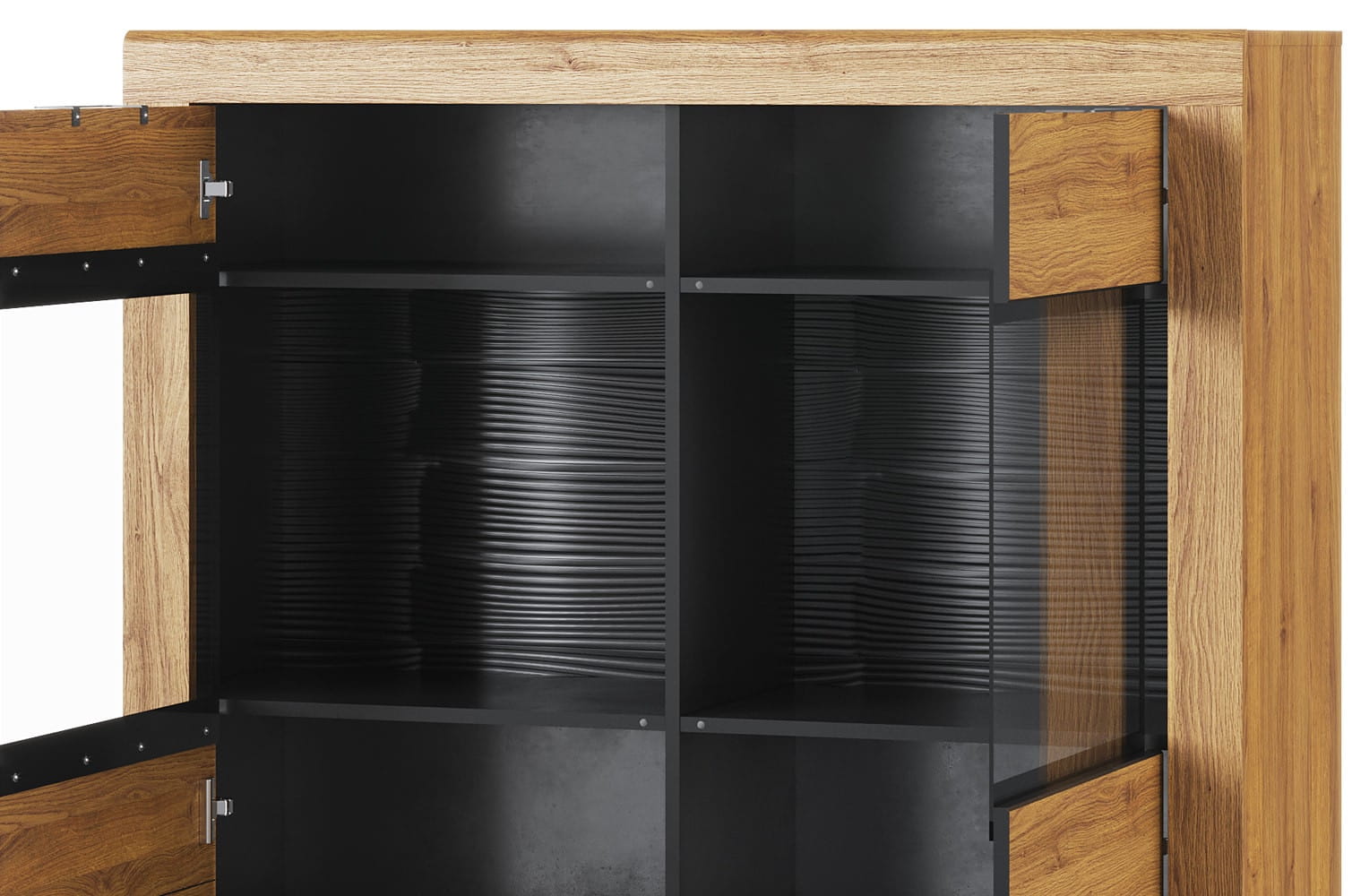 - Kolorystyka: camargue Oak with black mat elements