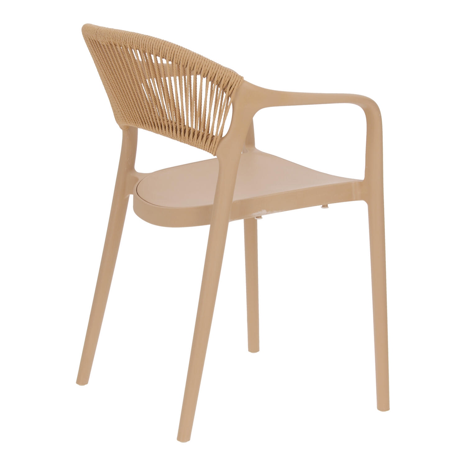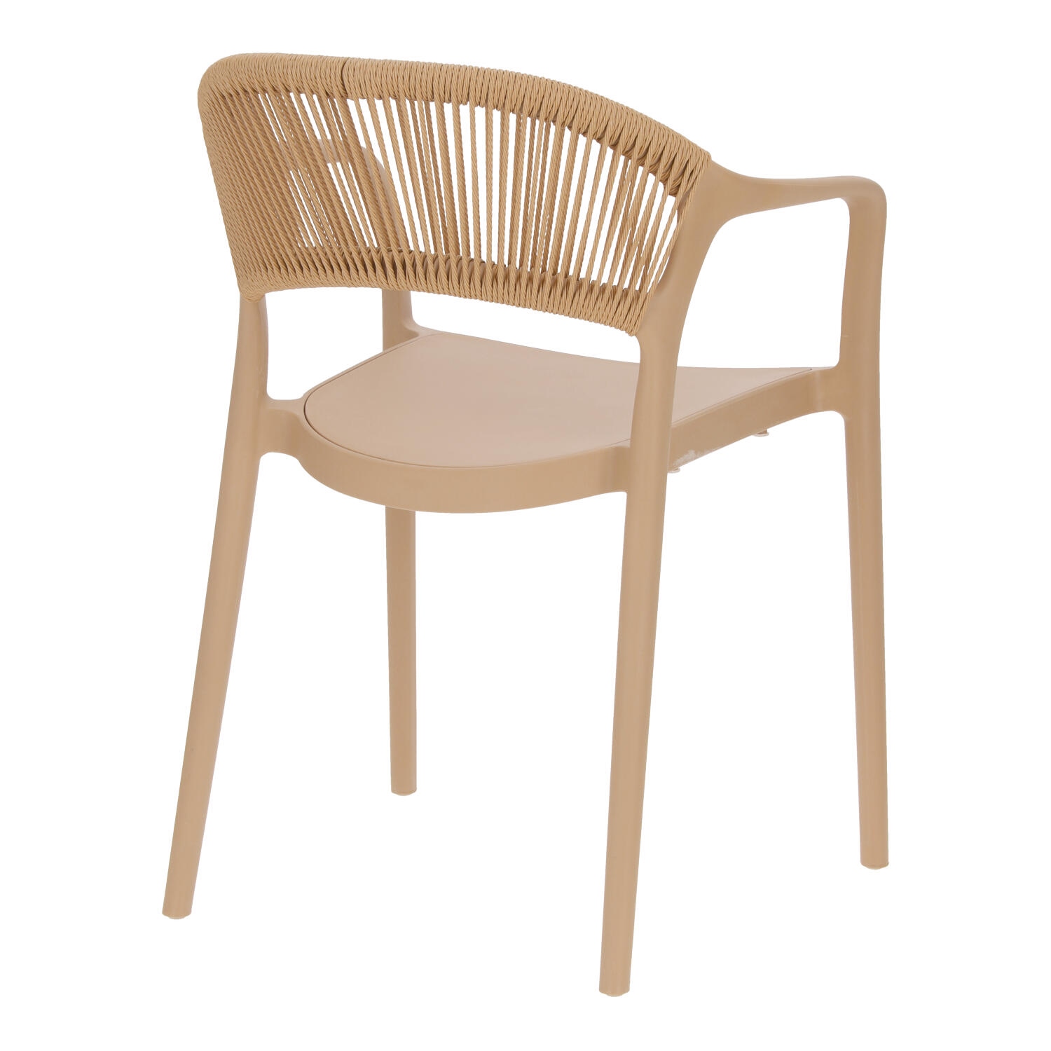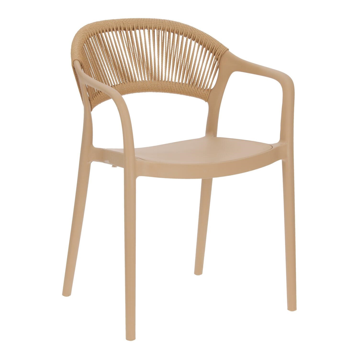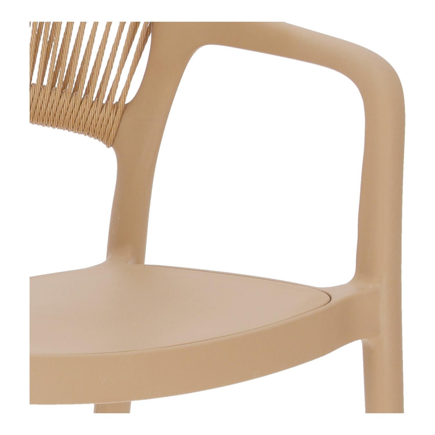 Krzesło Osma to połączenie wytrzymałego na promienie UV polipropylenu z plecionką ze sznura z tworzywa sztucznego (poliestru). Krzesło o wygodnym, lekko zaoblonym oparciu wyposażone zostało również w podłokietniki. Intrygujące oparcie jest nie tylko efektowne, ale również wygodne. Miękkie sznurki układają się pod kształt pleców. Max. obciążenie 120kg. Krzesło nie wymaga montażu. Krzesło sztapluje się. Maksymalne stosy 6szt Krzesło nadaje się do użytku na zewnątrz.