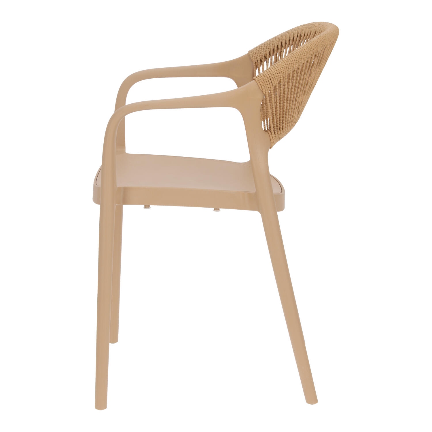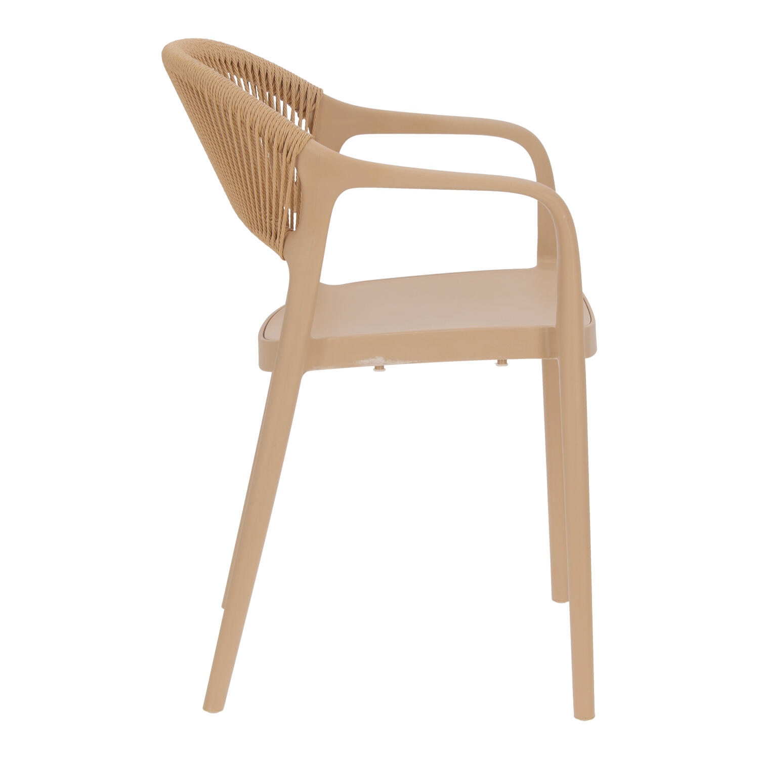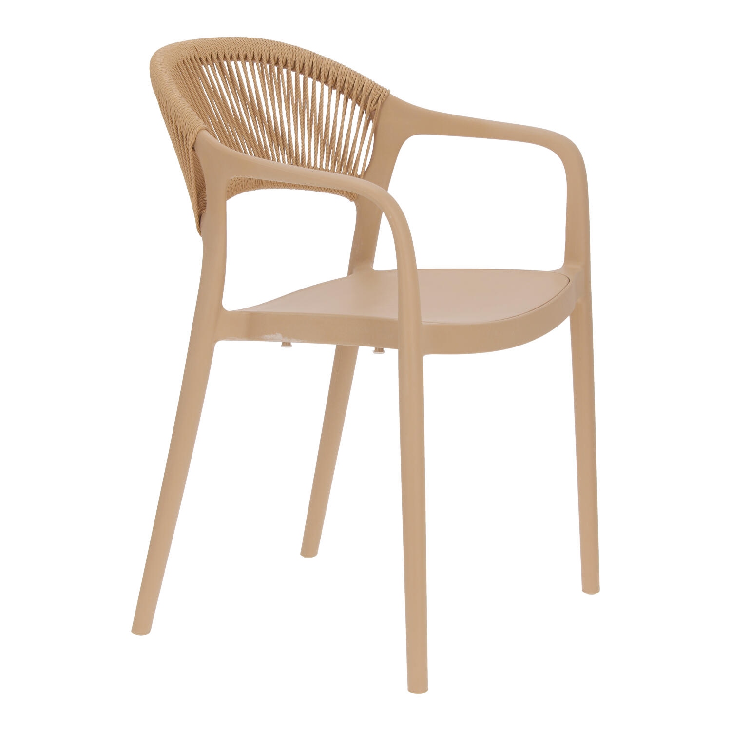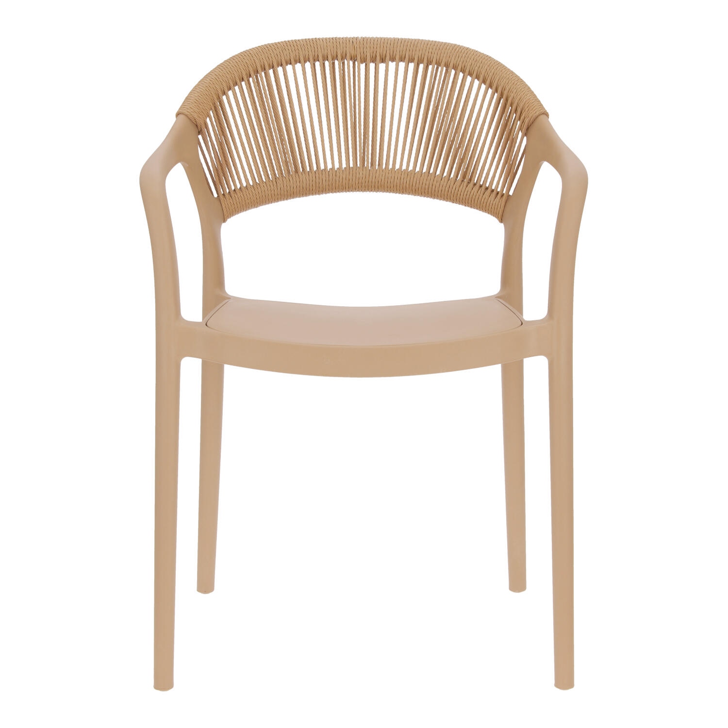 Krzesło Osma to połączenie wytrzymałego na promienie UV polipropylenu z plecionką ze sznura z tworzywa sztucznego (poliestru). Krzesło o wygodnym, lekko zaoblonym oparciu wyposażone zostało również w podłokietniki. Intrygujące oparcie jest nie tylko efektowne, ale również wygodne. Miękkie sznurki układają się pod kształt pleców. Max. obciążenie 120kg. Krzesło nie wymaga montażu. Krzesło sztapluje się. Maksymalne stosy 6szt Krzesło nadaje się do użytku na zewnątrz.