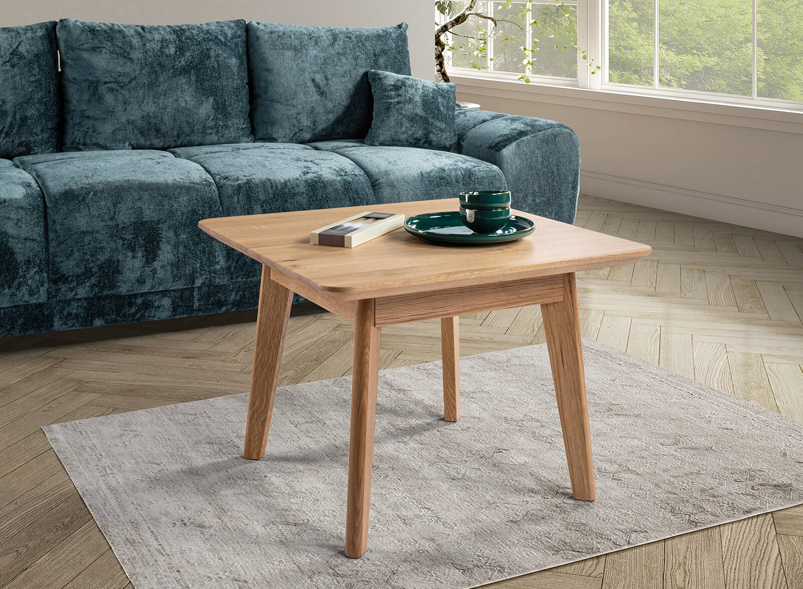 Ta oferta dotyczy ławy 9512, z kwadratowym blatem 70x70. Stolik stanowi doskonałe połączenie świeżości formy i surowego piękna dębu, podkreślone naturalnym olejem.