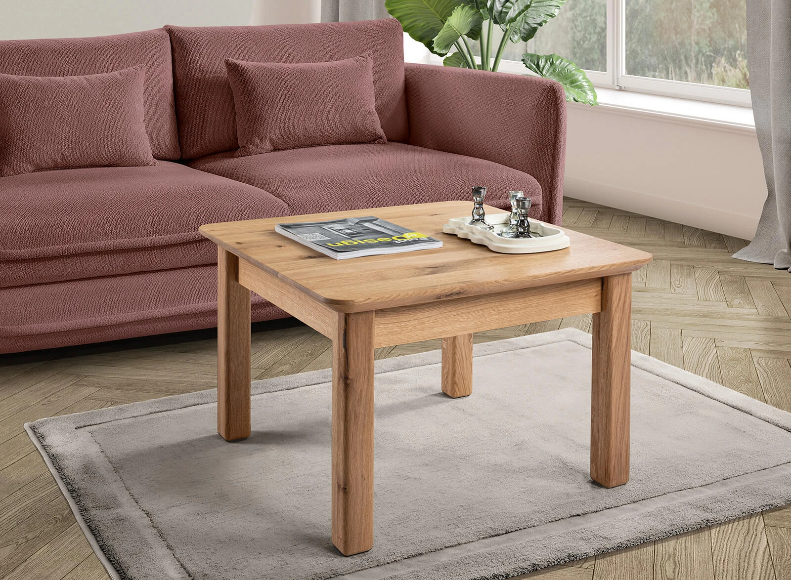 Ta oferta dotyczy ławy 9514, z kwadratowym blatem 70x70. Stolik stanowi doskonałe połączenie świeżości formy i surowego piękna dębu, podkreślone naturalnym olejem.