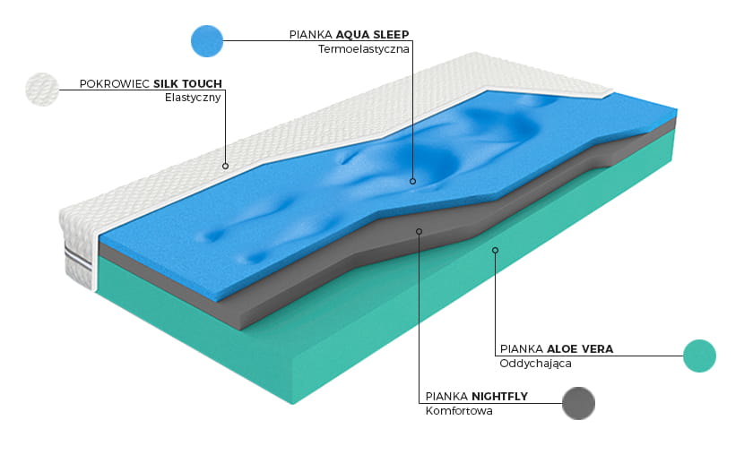 AQUA SLEEP - wyjątkowo ergonomiczny materac piankowy gwarantujący zdrowy sen, zbudowany z trzech