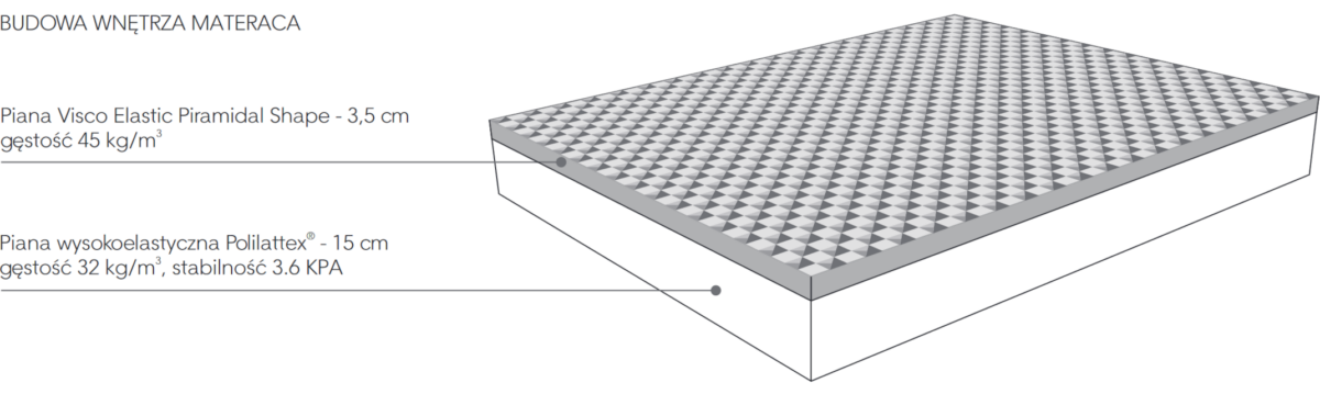 Pokrowiec został wypełniony pianą Visco, która adaptuje się do kształtów ciała użytkownika, co bardzo korzystnie wpływa na regenerację organizmu.