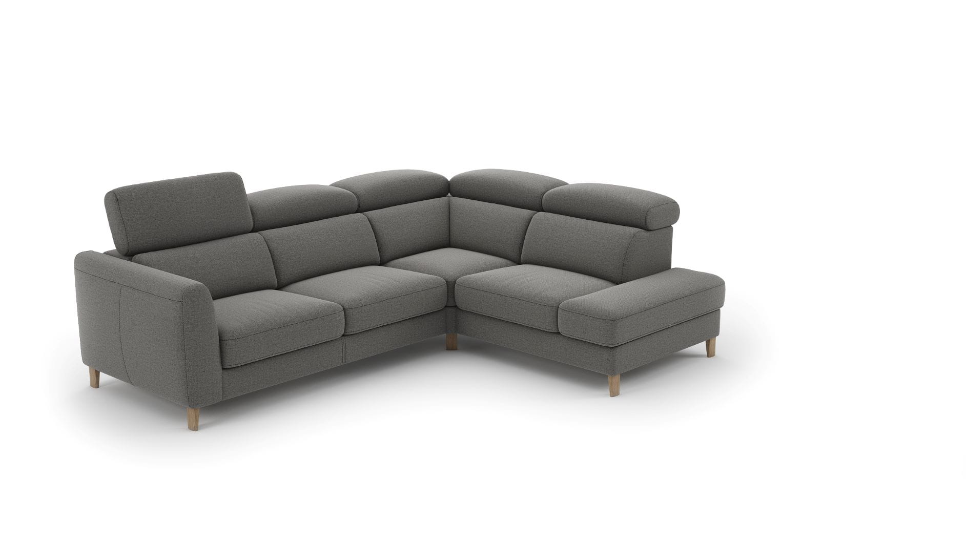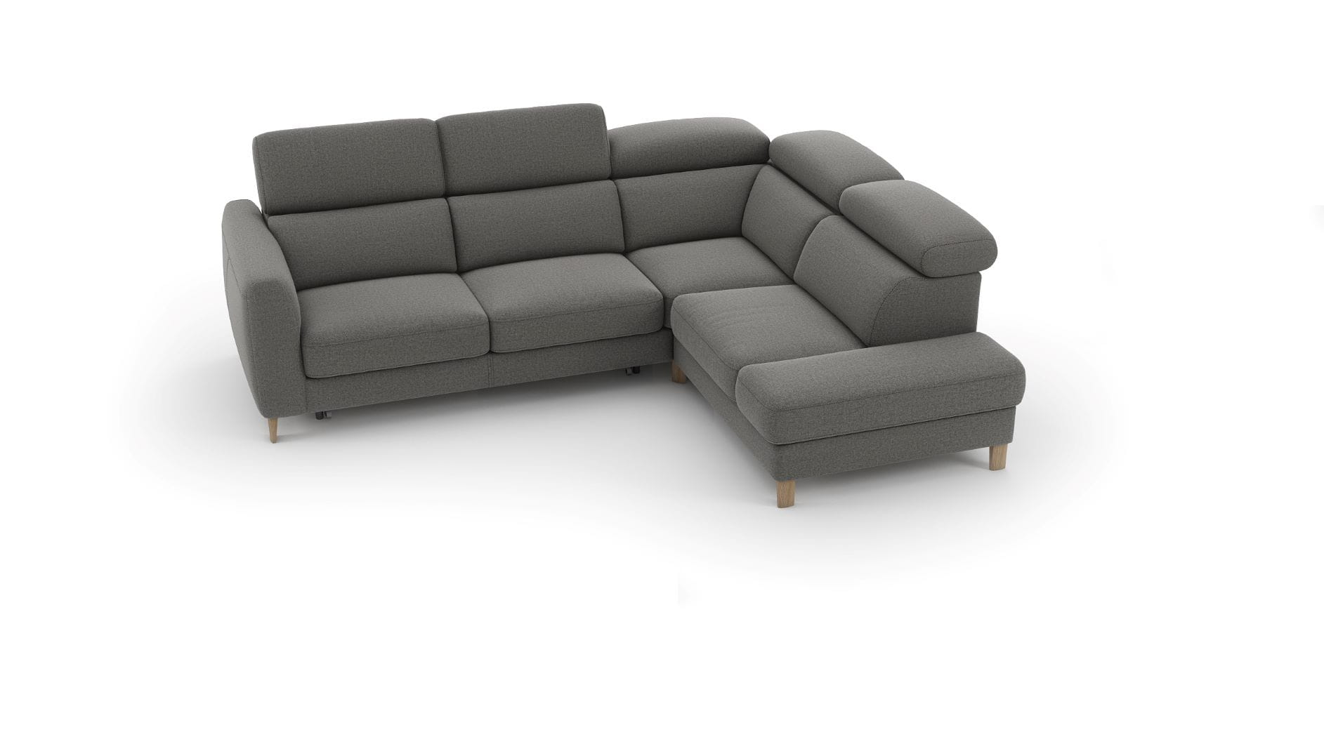 Niespotykanie komfortowa oraz ponadczasowa kolekcja wyposażona zoatała w funkcję spania oraz pojemnik na pościel. Duży atut funkcjonalny oraz wizualny podnoszący komfort wypoczynku stanowią regulowane zagłówki i elelktryczna funkcja relaks zastosowana w wybranych lementach. Mebel na wysokiej drewnianej nodze prezentuje się lekko i stylowo.