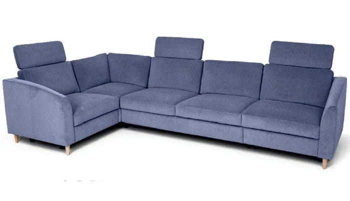 Ta oferta dotyczy narożnika FANO w układzie 1PL-2,5RN-N-1PP-3ZW, wyposażonego w funkcję spania o powierzchni leżenia: 208x120 cm i pojemnik na pościel w formie szuflady.