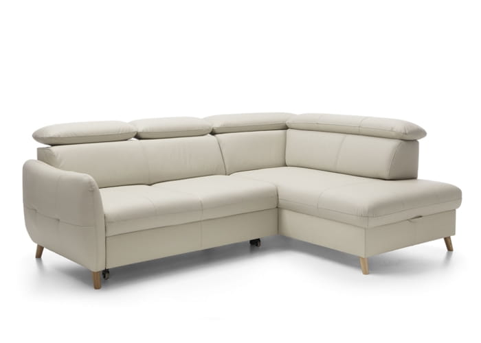 Nowoczesny rozkładany narożnik Hugo stanowi idealne wyposażenie niewielkich mieszkań. Wygodny zachęca do relaksu. Gdy oczekujesz gości możesz ją łatwo zmienić w praktyczne łóżko. Mocna konstrukcja w połączeniu z piankową wyściółką zapewnia wysoki komfort i przyjemność użytkowania przez długi czas. Ruchome zagłówki sprawiają, że Hugo staje się jeszcze bardziej wygodne.