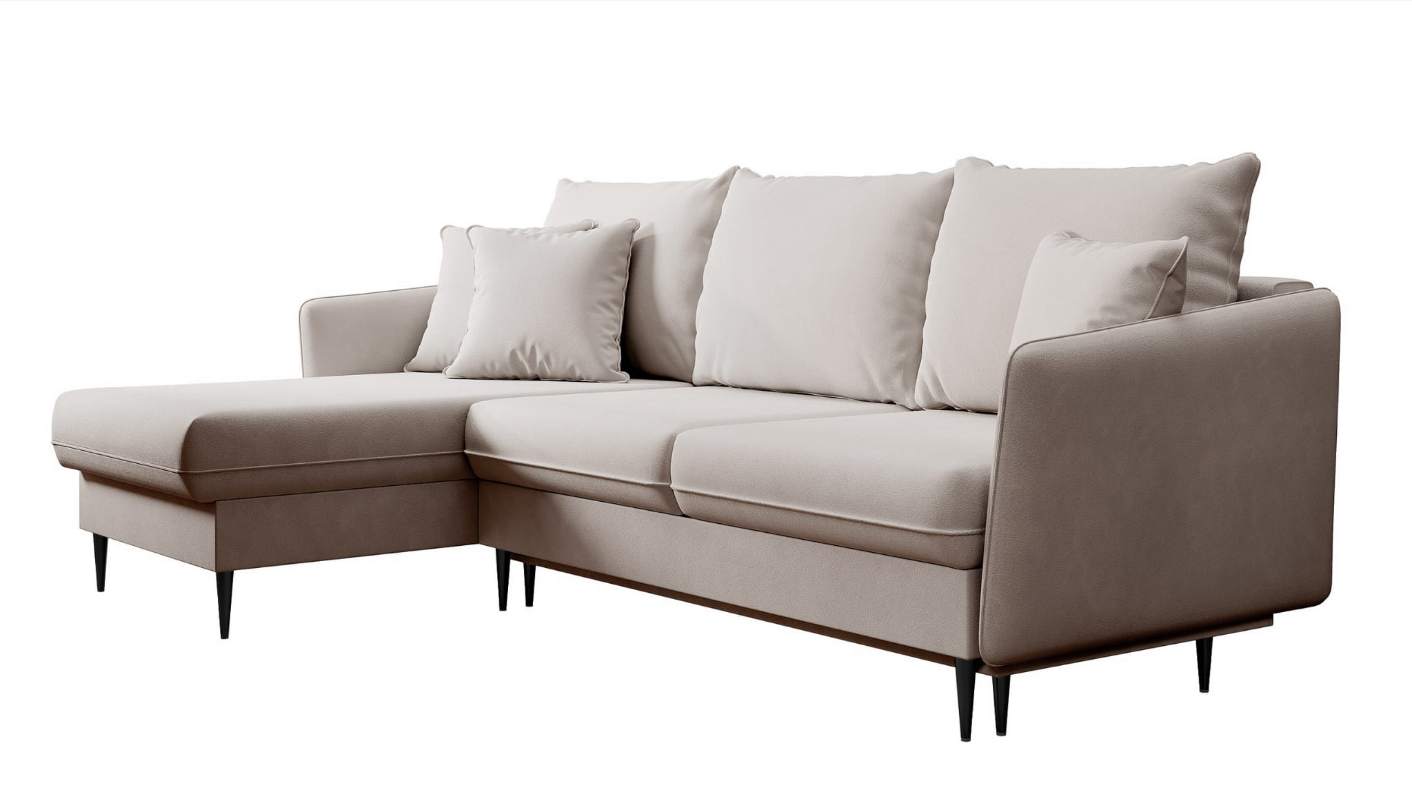 Piękna kanapa z miękkimi poduchami oferuje tobie niezapomnianą miękkość odpoczynku. Wysokie smukłe nogi dodają sofie delikatności. Zastosowaliśmy w niej bardzo wygodną funkcję spania. Możesz doskonale wypoczywać na niej w dzień i w nocy. Nesto ma wiele funkcji i nadal wygląda lekko i delikatnie.