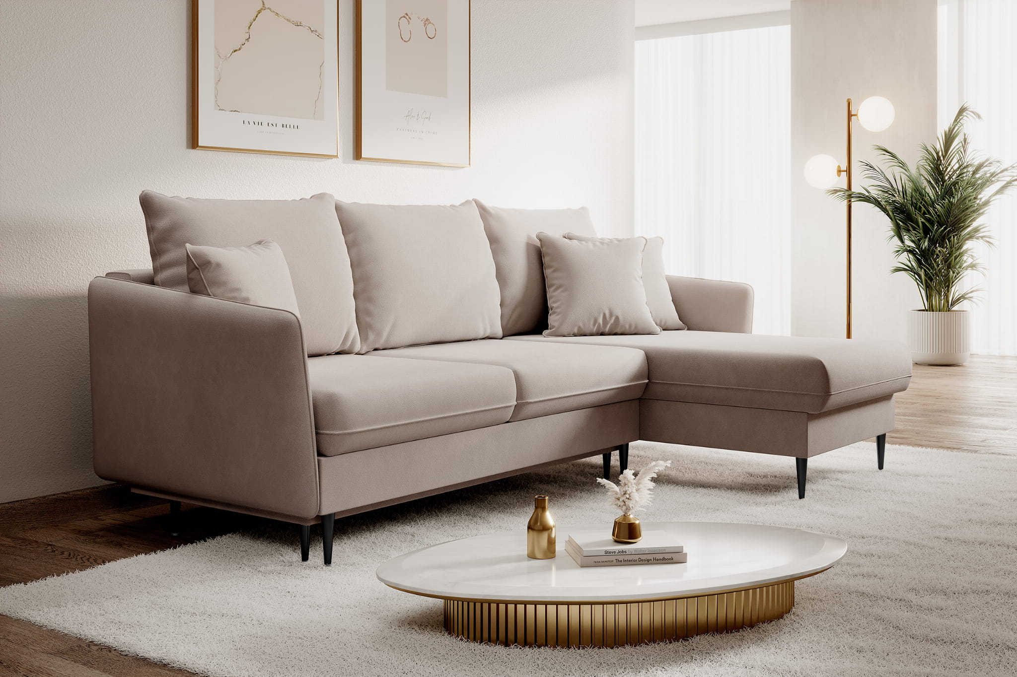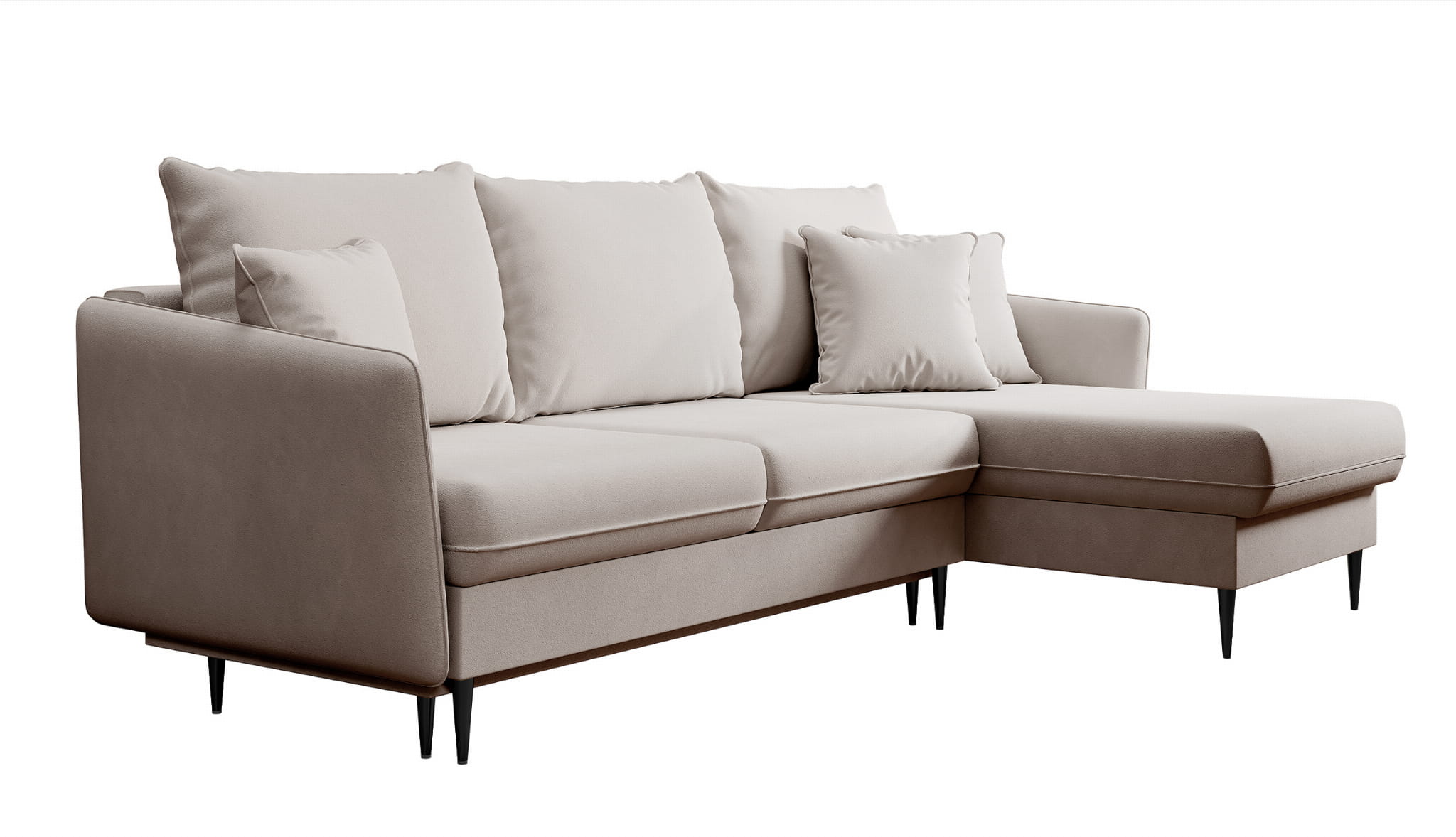 Piękna kanapa z miękkimi poduchami oferuje tobie niezapomnianą miękkość odpoczynku. Wysokie smukłe nogi dodają sofie delikatności. Zastosowaliśmy w niej bardzo wygodną funkcję spania. Możesz doskonale wypoczywać na niej w dzień i w nocy. Nesto ma wiele funkcji i nadal wygląda lekko i delikatnie.