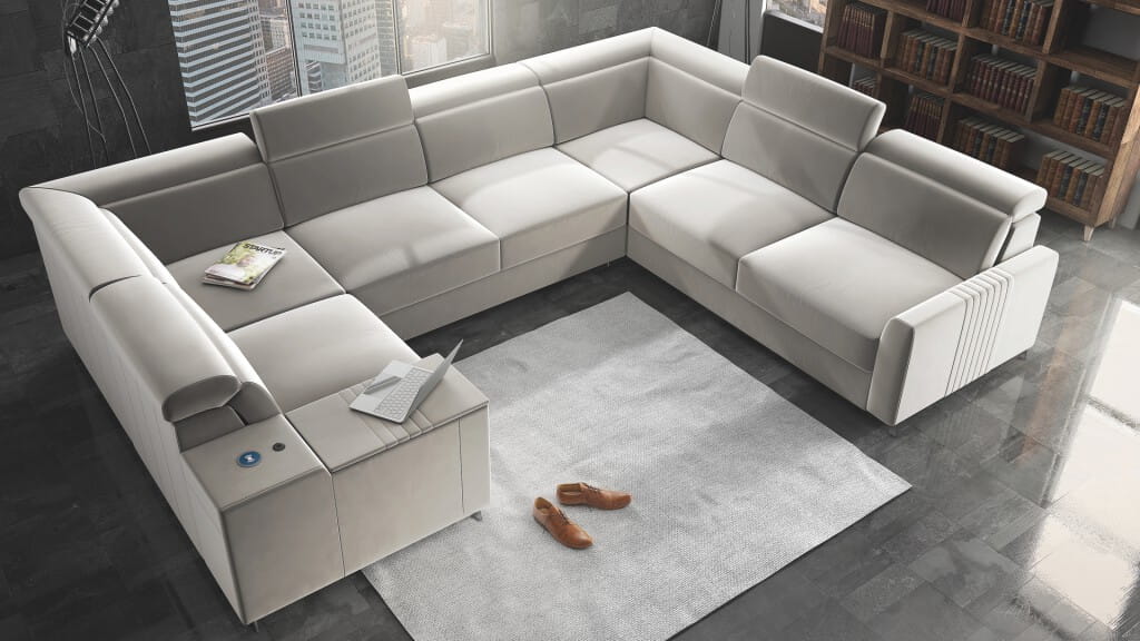 ORTONA i mocne strony kolekcji to uniwersalność w kreowaniu zestawu o różnych kształtach i rozmiarach, głębokie wygodne siedziska, duża i wygodna powierzchnia do leżenia typu „lift/puma”, pojemniki na pościel, ruchome wielostopniowe zagłówki.