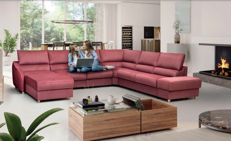 TERAMO jest kolekcją modułową, która oprócz sof oferuje również możliwość indywidualnego komponowania zestawów narożnych, zawierających elektryczną funkcję relaks, pojemniki na pościel czy też gniazda USB 5V.