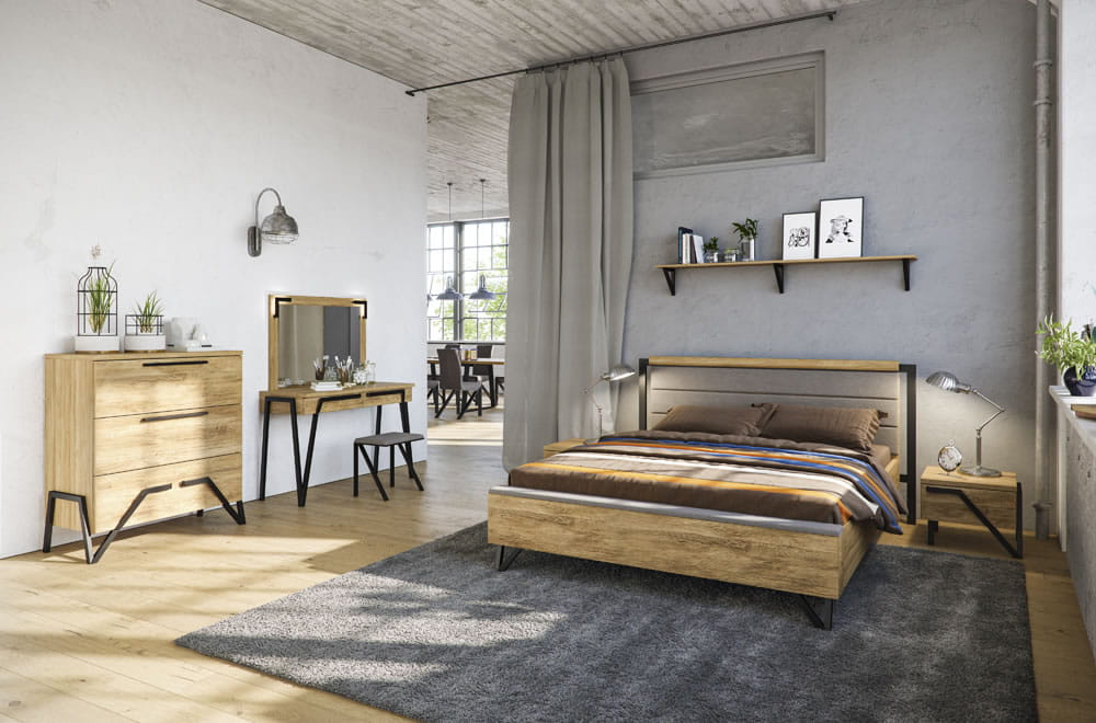 Pik to wyjątkowa kolekcja mebli do salonu, jadalni i sypialni z frontami z litego drewna i korpusami w okleinie naturalnej. Zachwyca oryginalnymi bryłami w stylu industrialnym oraz piękną kolorystyką: kasztan i dąb naturalny lager. Dębowe elementy zostały poddane procesowi głębokiej strukturyzacji, a następnie wybarwione, dzięki czemu meble zyskały niepowtarzalny charakter. Metalowe nogi i pochwyty wspaniale podkreślają loftowy styl kolekcji – proporcjonalne, ciekawie połączone, nadają bryłom lekkości i designerskiego sznytu. Blaty stołów charakteryzują się odpornością na działanie podwyższonych temperatur i alkoholu. Meble wyposażono w nowoczesne rozwiązania, takie jak system cichego domykania drzwiczek oraz oświetlenie LED z wyłącznikiem pojemnościowym.