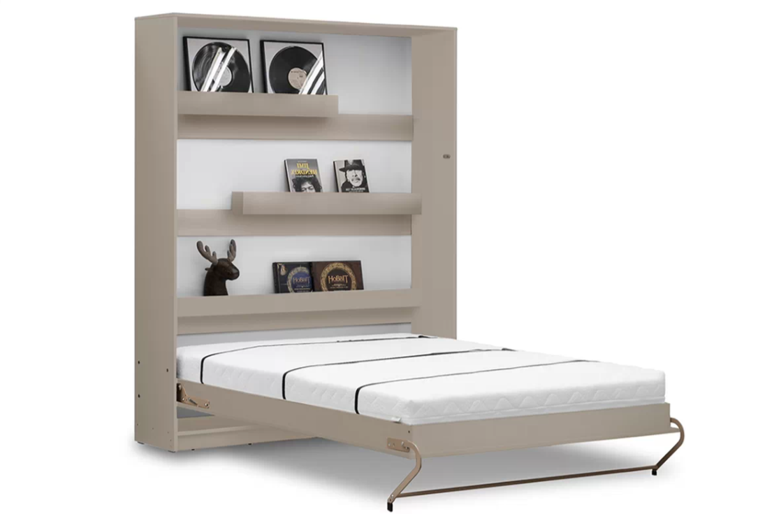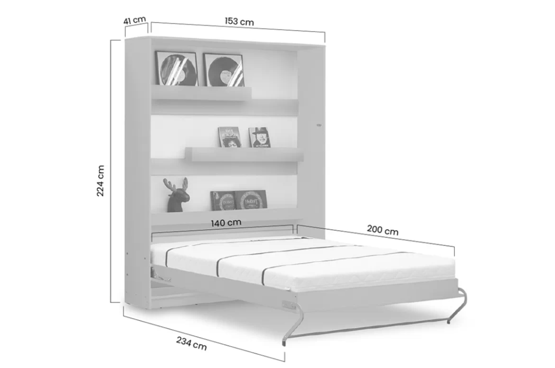 Półkotapczan pionowy 140x200 z praktycznymi półkami to idealne rozwiązanie do pokoju młodzieżowego lub gościnnego. Otwieranie i zamykanie wspomagane sprężynami.