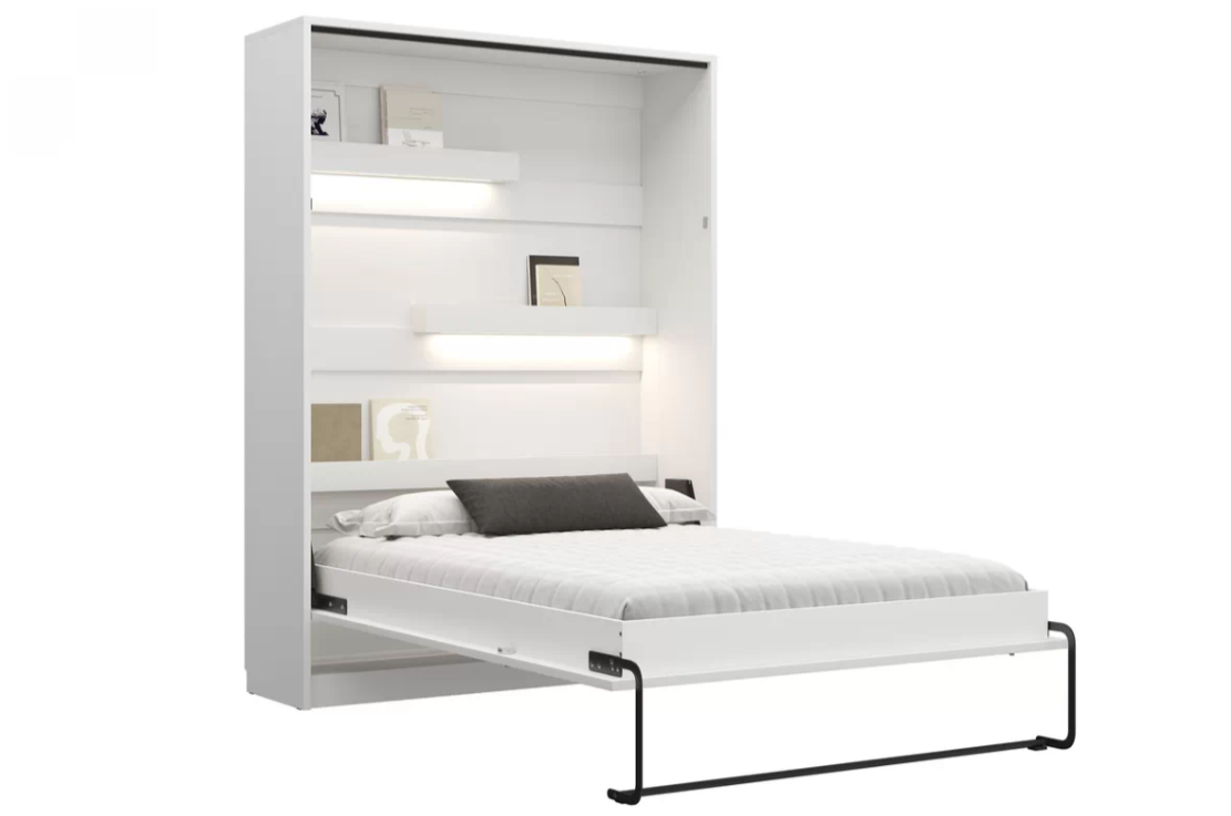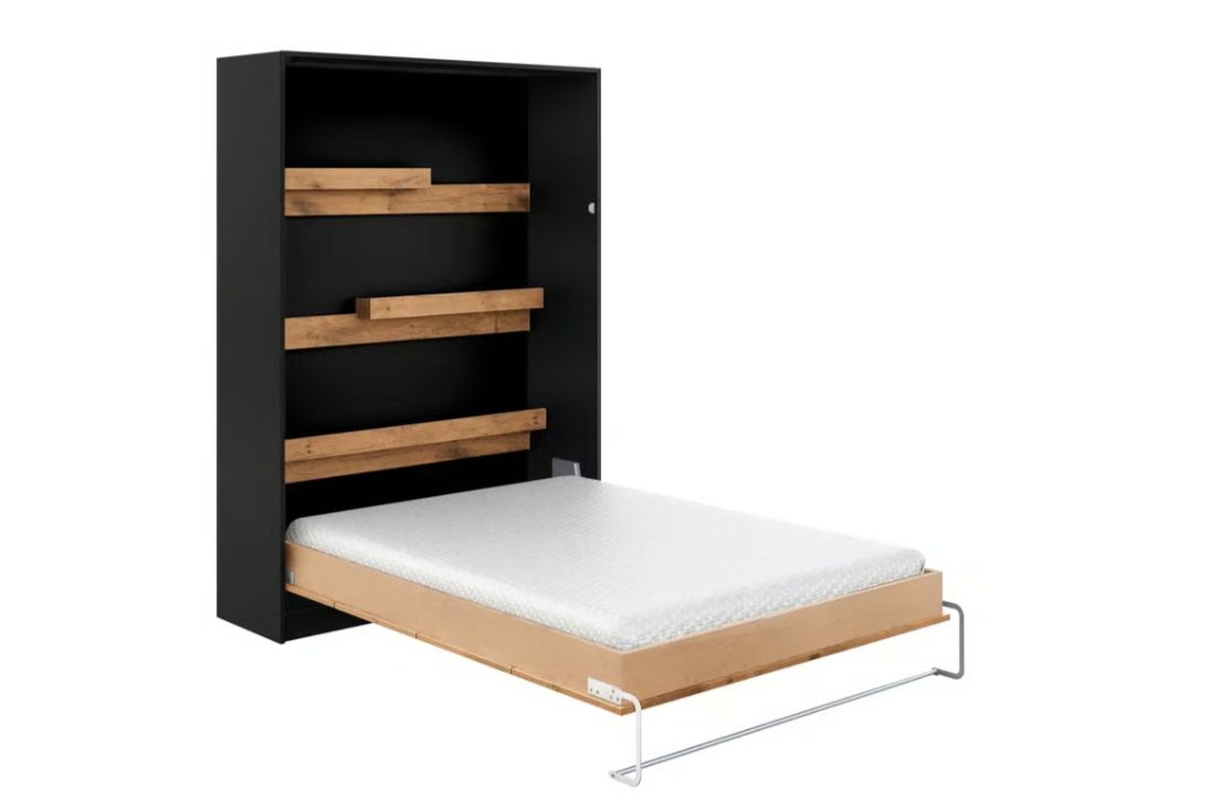 Łóżko wykonane jest z płyty laminowanej o grubości 18 mm, co gwarantuje jego trwałość i odporność na uszkodzenia. System zamykania z blokadą zapobiega samoczynnemu otwieraniu się łóżka, a drewniany stelaż z podnośnikiem gazowymi zapewnia komfort użytkowania. Dodatkowym atutem jest możliwość montażu mebla do ściany, co zwiększa jego stabilność i bezpieczeństwo. Jego minimalistyczny design i uniwersalna kolorystyka sprawią, że będzie ono pasować do różnych aranżacji, a jednocześnie podkreślać indywidualny charakter pomieszczenia.