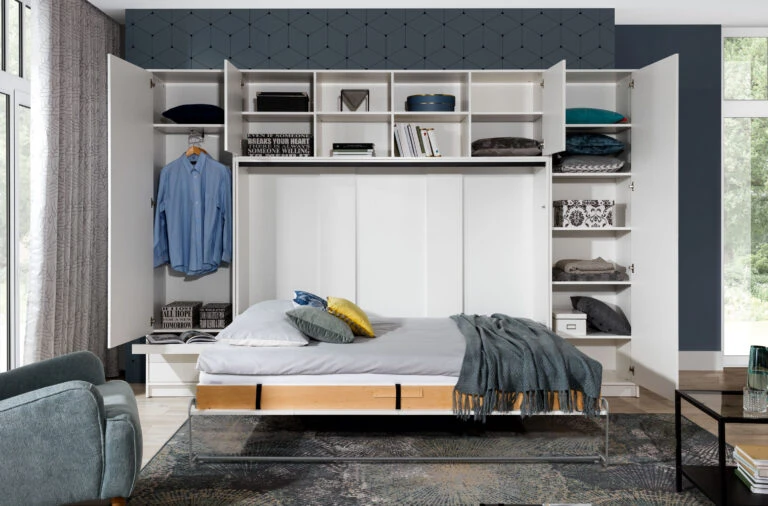 - W skład kolekcji wchodzą: szafy, regały, komody i biurka które można dowolnie łączyć w zabudowę