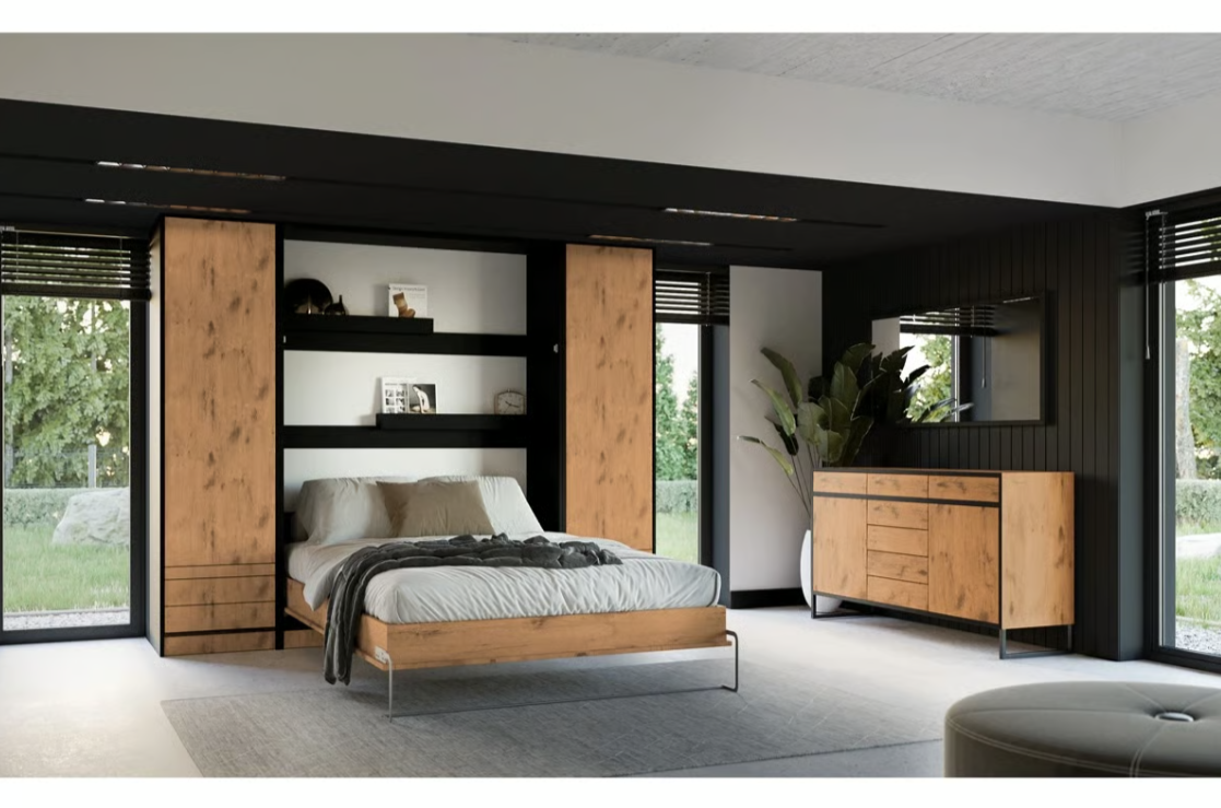 - W skład kolekcji wchodzą: szafy, regały, komody i biurka które można dowolnie łączyć w zabudowę