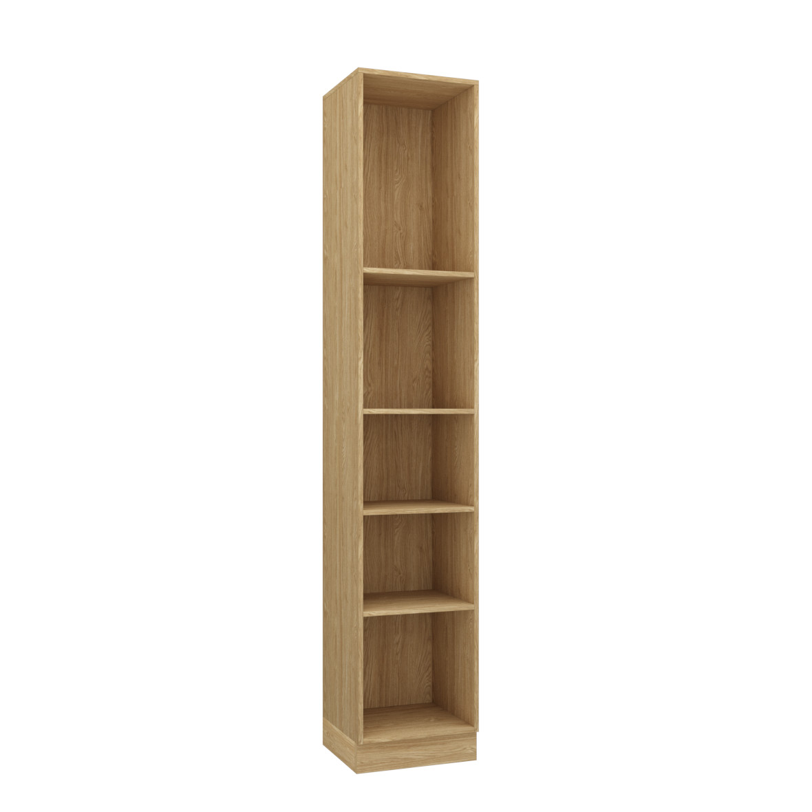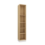 Praktyczny dodatek do zabudowy Sleep Varia, który został wykonany z płyty meblowej w kolorze olejowanego dębu z wyraźnym usłojeniem. Dolna część regału jest dostępna w kilku wariantach kolorystycznych, co pozwala na dopasowanie do stylu reszty zabudowy oraz wystroju wnętrza, w którym ma się znaleźć. Głębokość regału jest nieco mniejsza od reszty zabudowy, co daje możliwość albo umieszczenia go w jednej linii z pozostałymi meblami albo też delikatne cofnięcie, co zapewnia ciekawy efekt wizualny.