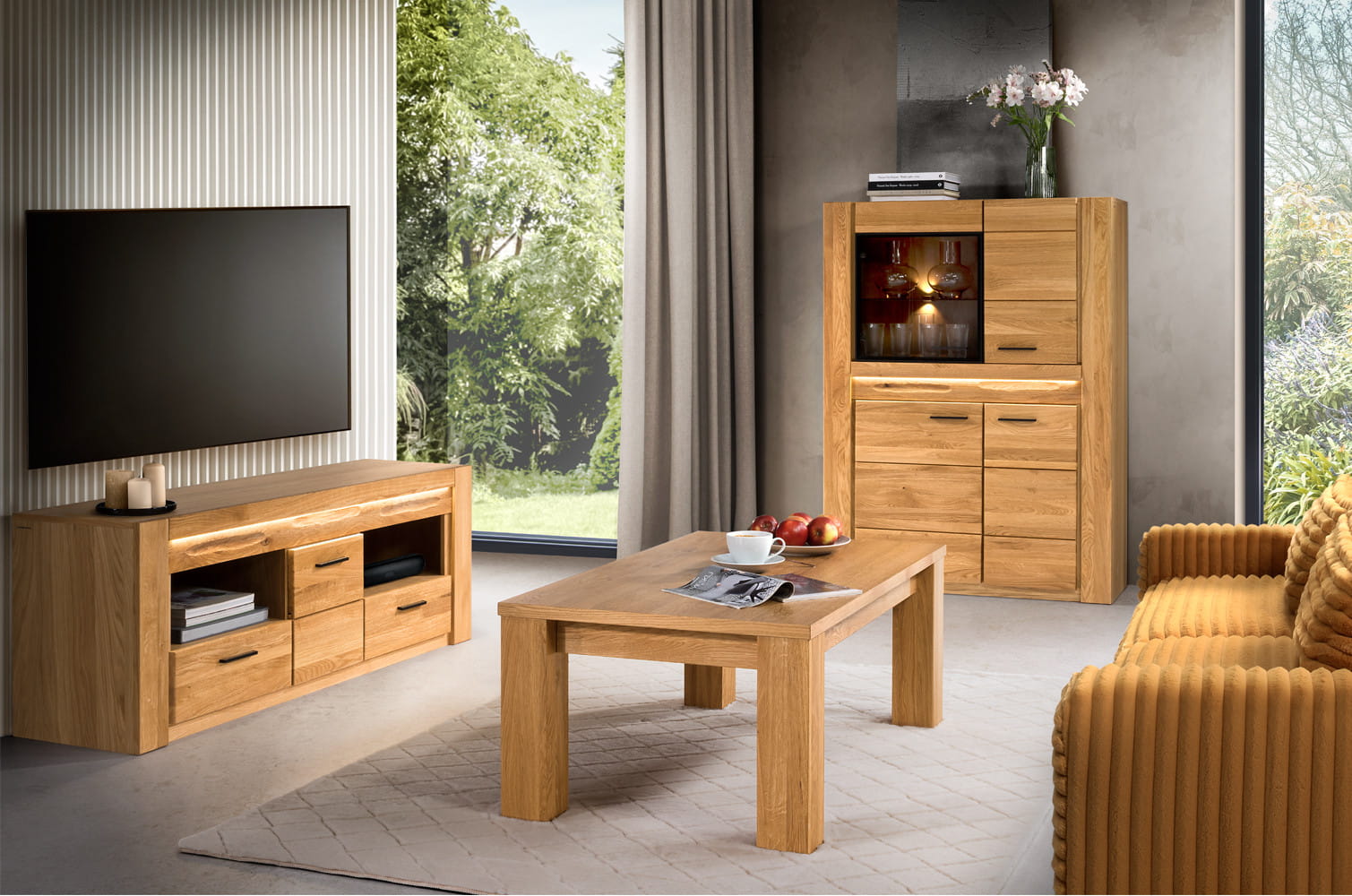 Regał VELVET, w całej swej okazałości ukazuje piękno litego drewna dębu, jego ciepło, usłojenie i barwę. O wysokiej jakości wykonania mebla, nawet nie ma co wspominać, bowiem jest znakomita, precyzyjna w każdym detalu. W pełni spełni najbardziej wygórowane oczekiwania użytkowników.