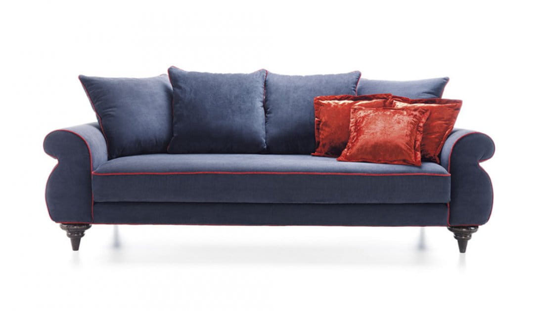 Klasyczną linię sofy AIRONE podkreśla ozdobna lamówka.
