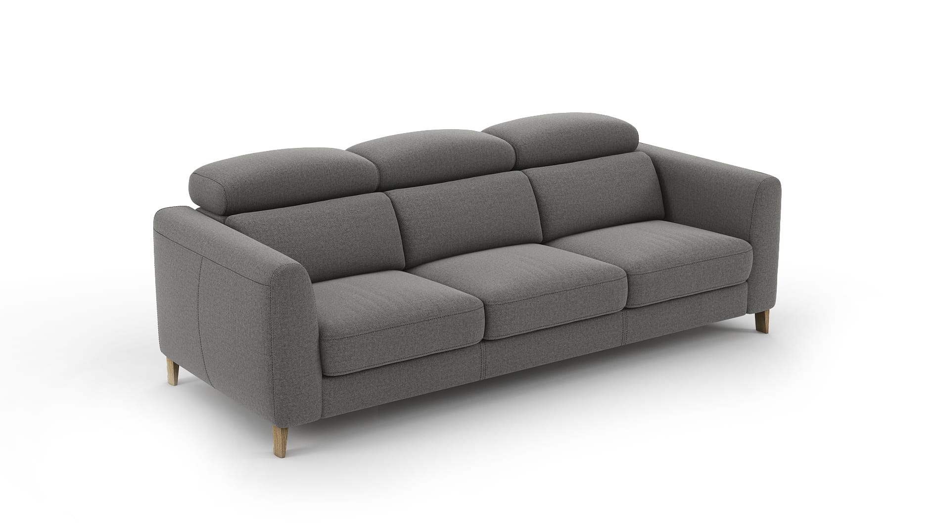 Niespotykanie komfortowa oraz ponadczasowa kolekcja wyposażona zoatała w funkcję spania oraz pojemnik na pościel. Duży atut funkcjonalny oraz wizualny podnoszący komfort wypoczynku stanowią regulowane zagłówki i elelktryczna funkcja relaks zastosowana w wybranych lementach. Mebel na wysokiej drewnianej nodze prezentuje się lekko i stylowo.