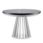LAMELLO 09 to mebel nie tylko piękny, ale i wyjątkowo praktyczny. W wersji podstawowej stół ma 110 cm średnicy, a po rozłożeniu, dzięki czterem wkładom po 50 cm każdy osiąga aż 310 cm długości. Wkłady przechowywane są poza stołem, co pozwala zachować jego zgrabną formę na co dzień. Dodatkowa metalowa noga zapewnia stabilność konstrukcji, szczególnie przy pełnym rozłożeniu gwarantując wygodę i bezpieczeństwo użytkowania nawet podczas dużych spotkań.
