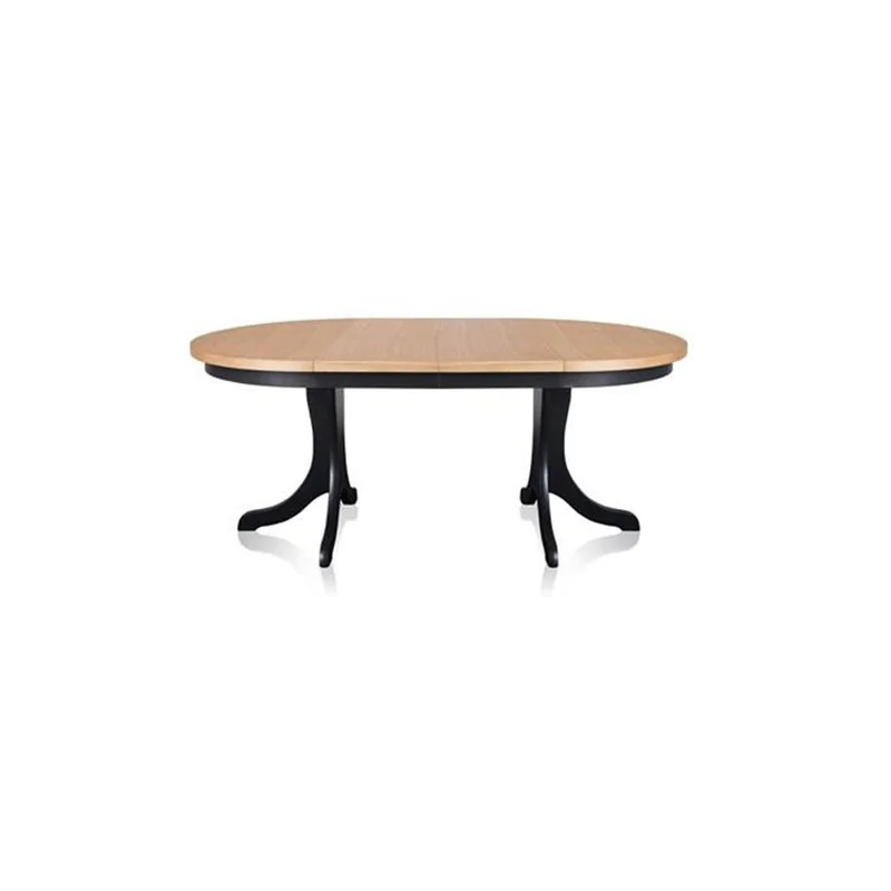 Stół Oskar XII Halexjest meblem, który przypadnie do gustu wszystkim miłośnikom wnętrz utrzymanych w stylu angielskim. Zasługą tego są jego stylizowane nóżki. Stół Oskar XII Halex z maskownicami znajdzie zastosowanie w jadalni, kuchni czy pokoju dziennym. Jest to mebel wyposażony w funkcję rozkładania. Sprzedawany jest on w zestawie z 2 wkładkami każda o długości 50 centymetrów. Przeznaczone są one do przechowywania poza stołem. Mebel posiada blat fornirowany okleiną bukową lub dębową do wyboru. Opiera się on na solidnych nogach wykonanych z drewna bukowego w kolorze czarnym lub białym. W zestawie znajduje się także dodatkowa metalowa noga.