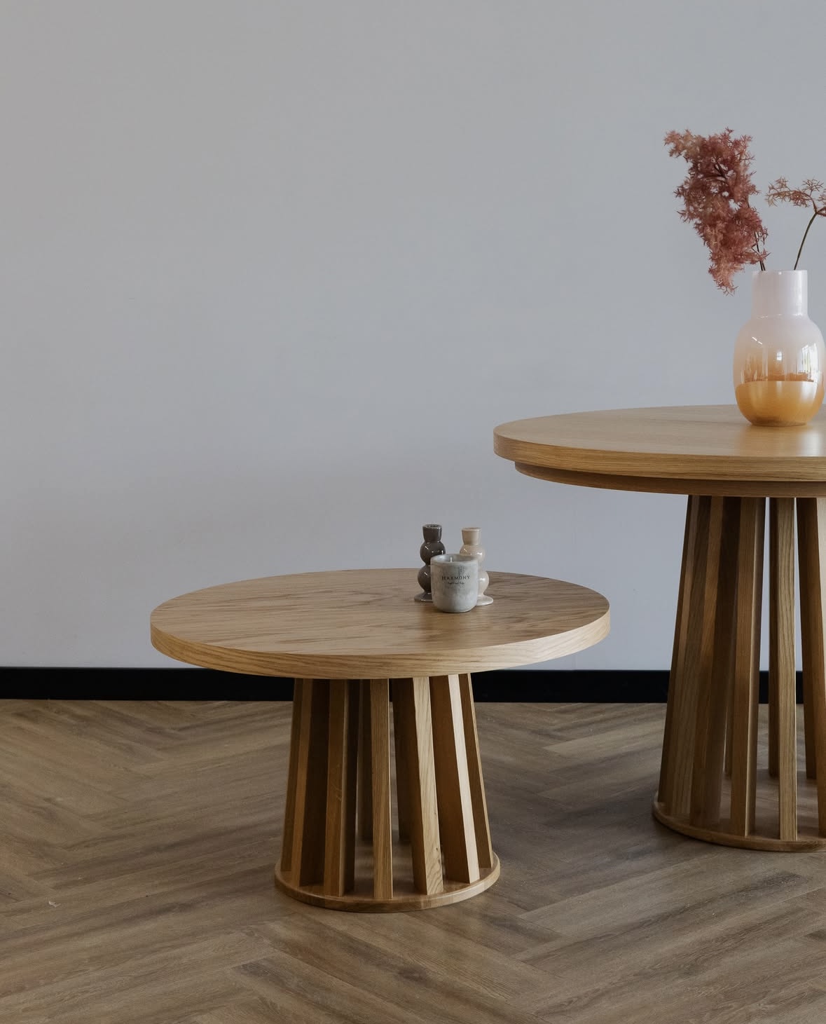 Model TAVO o średnicy 80 cm to doskonały wybór dla osób ceniących naturalne drewno i rzemieślniczą jakość. Blat fornirowany zachwyca autentycznym wyglądem i strukturą drewna. Nogi wykonane z litego drewna dębowego lub bukowego zapewniają meblowi odpowiednią stabilność, wytrzymałość i wyjątkowy charakter.