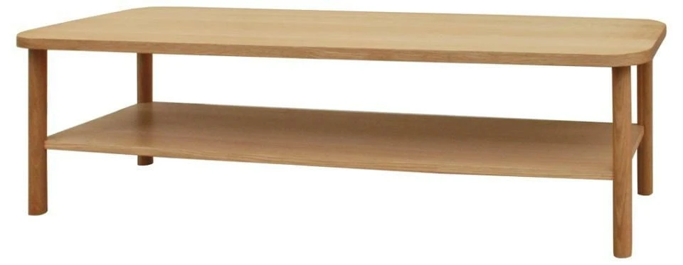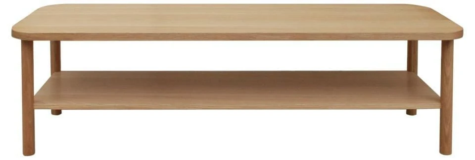 Prostokątny stolik kawowy Banbury, blat i półka fornir dębowy lakierowany PU, podstawa dąb lakierowany NC, 150x50x42 cm. Dwupoziomowy stolik kawowy, wykonany z lakierowanego drewna oraz forniru, został zaprojektowany tak, aby wnieść ciepło i przytulność do salonu. Prostokątny blat o gładkich krawędziach zapewnia idealną powierzchnię do ekspozycji drobnych dekoracji. Dzięki półce poniżej, wszystkie czasopisma pozostają w zasięgu ręki. Taki design z łatwością doda stylu do salonu.