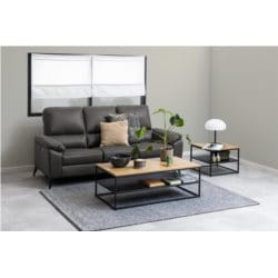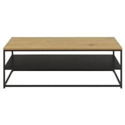 Stolik kawowy Gila w nowoczesnym, industrialnym stylu. Idealny do salonu, sypialni czy holu. Posiada prostokątny blat z płyty MDF w okleinie dębowej, pod którym znajduje się czarna półka. Całość opiera się na metalowej konstrukcji malowanej proszkowo na kolor czarny. Odpowienio zaprojektowana konstrukcja zapewnia wyjątkową stabilność.
