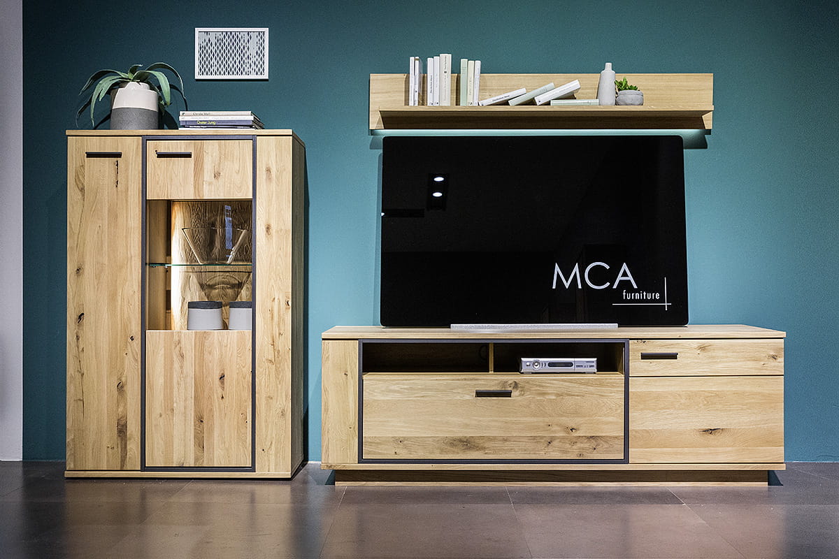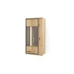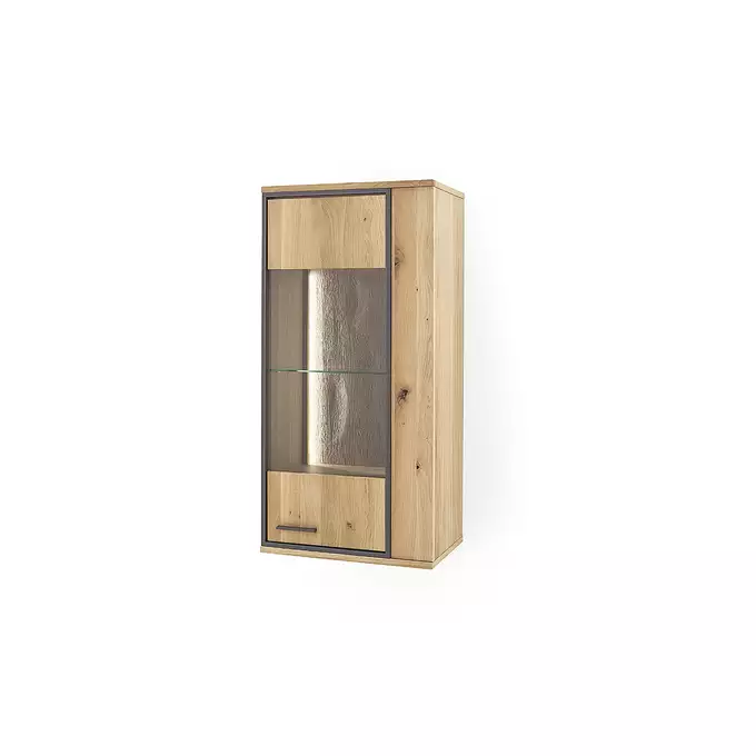 Mebel został wykonany z wysokiej jakości materiału, jest to połączenie drewna dębowego naturalnego z okleiną w tym samym kolorze. Mebel nawiązuje do natury. Szafka składa się z czterech półek. Dwóch szklanych i dwóch drewnianych. Szafka doskonale sprawdzi się jako "uzupełnienie wyposażenia" - stanowi ona dodatkowe miejsce do przechowywania. Podświetlenie nadaje jej uroku. Mebel, który nadaje się do prezentacji rzeczy, na które warto zwrócić szczególną uwagę w salonie. Mogą to być pamiątki, które przywołują dobre wspomnienia, czy ramki ze zdjęciami. Warto pamiętać, że maksymalne obciążenie mebla wynosi 20 kg.