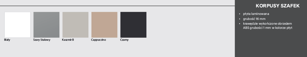 - Korpus: wykonany z wysokiej jakości płyty laminowanej