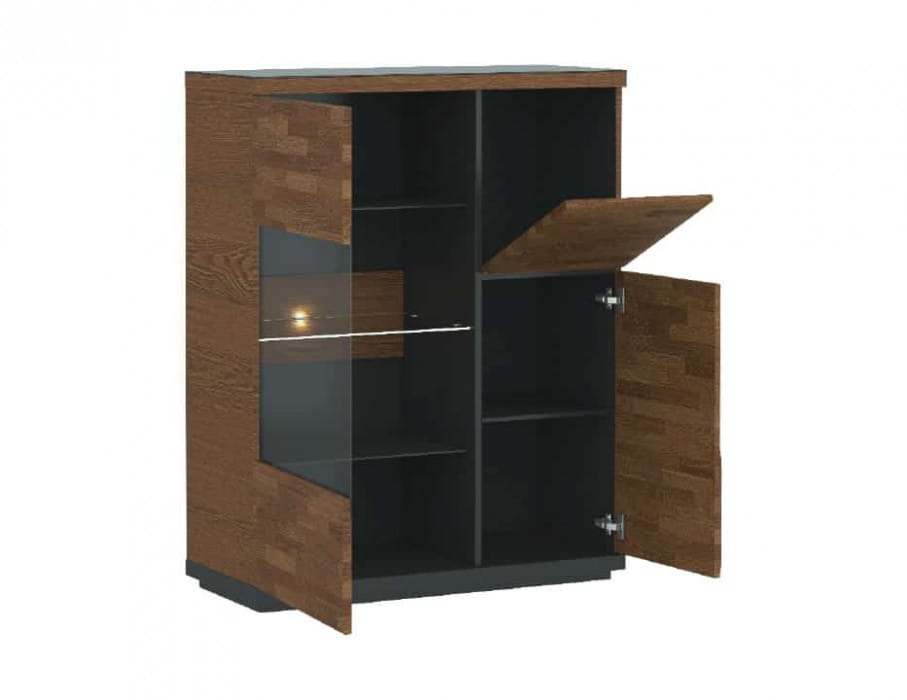 Ta oferta dotyczy barku wysokiego Verano 1DS1D prawego posiadającego 2 drzwi w tym jedne szklane i barek.