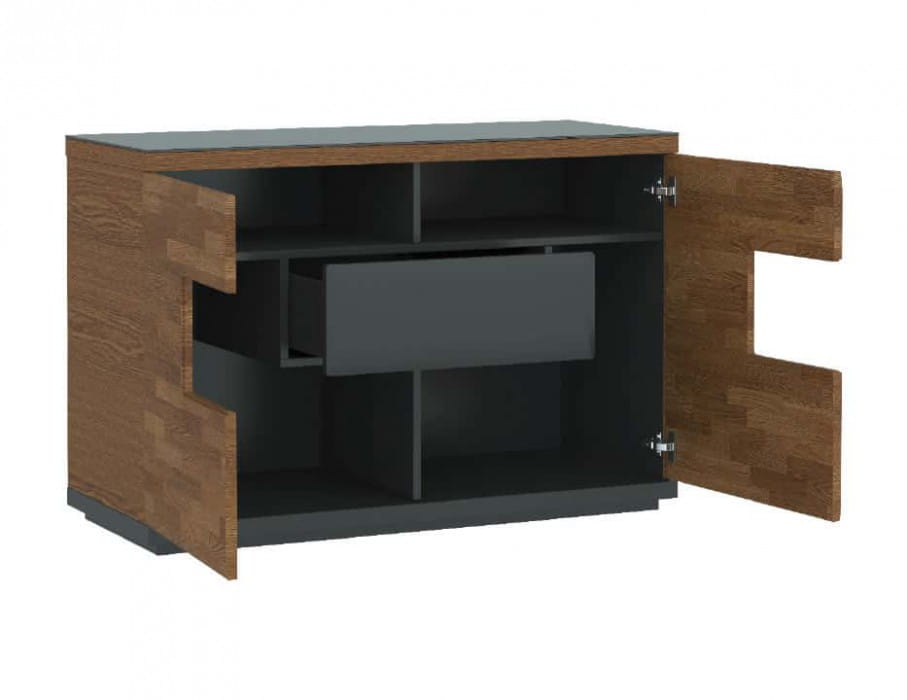 Ta oferta dotyczy komody Verano 2D1SZ posiadającą 2 drzwi i 1 szufladę.