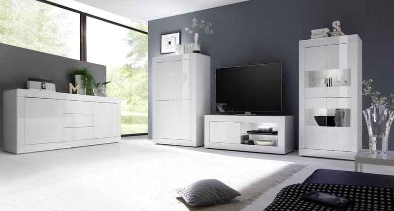 Witryna doskonale odnajdzie się w salonie oraz w jadalni. W salonie może posłużyć jako mebel zdobiący wnętrze, natomiast w jadalni jako mebel służący do przechowywania różnorodnych rzeczy. Witryna jest w białym kolorze, co oznacza, że optycznie powiększy wnętrze, w którym zastanie.