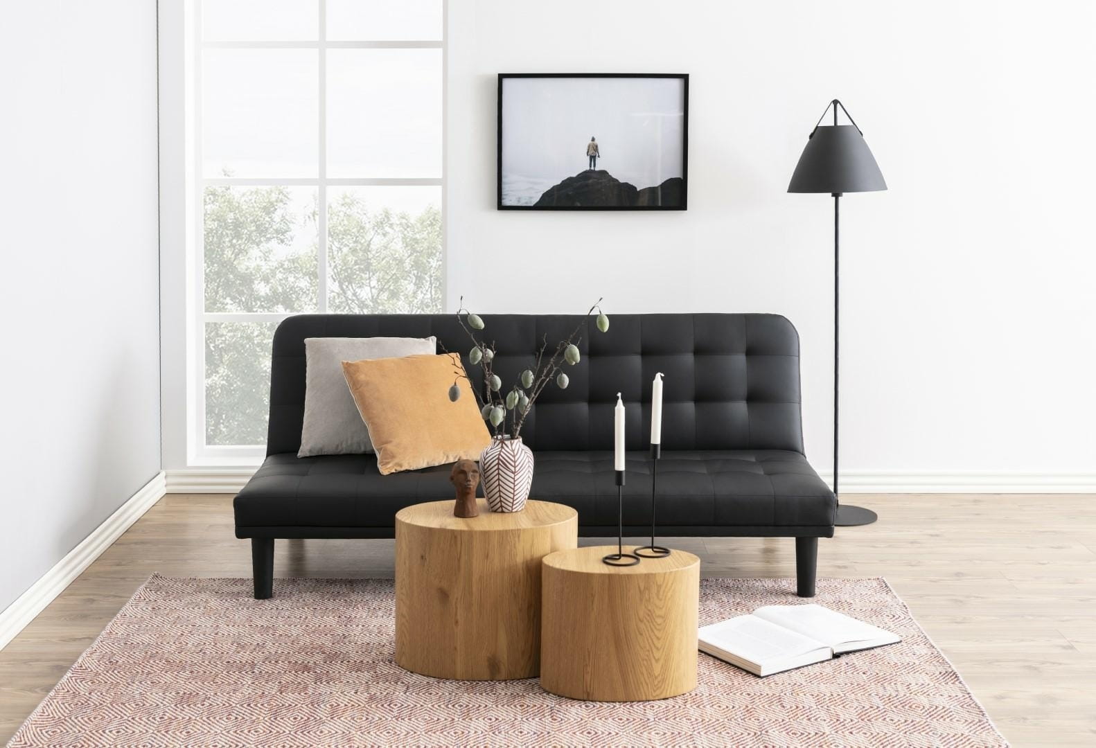 Zestaw stolików imitujących drewniane pieńki to stoliki oraz ozdoba w stylu boho. Owalne stoliki zostały zrobione z tworzywa powleczone okleiną imitującą dąb. Zestaw skłąda się z dwóch stolików.